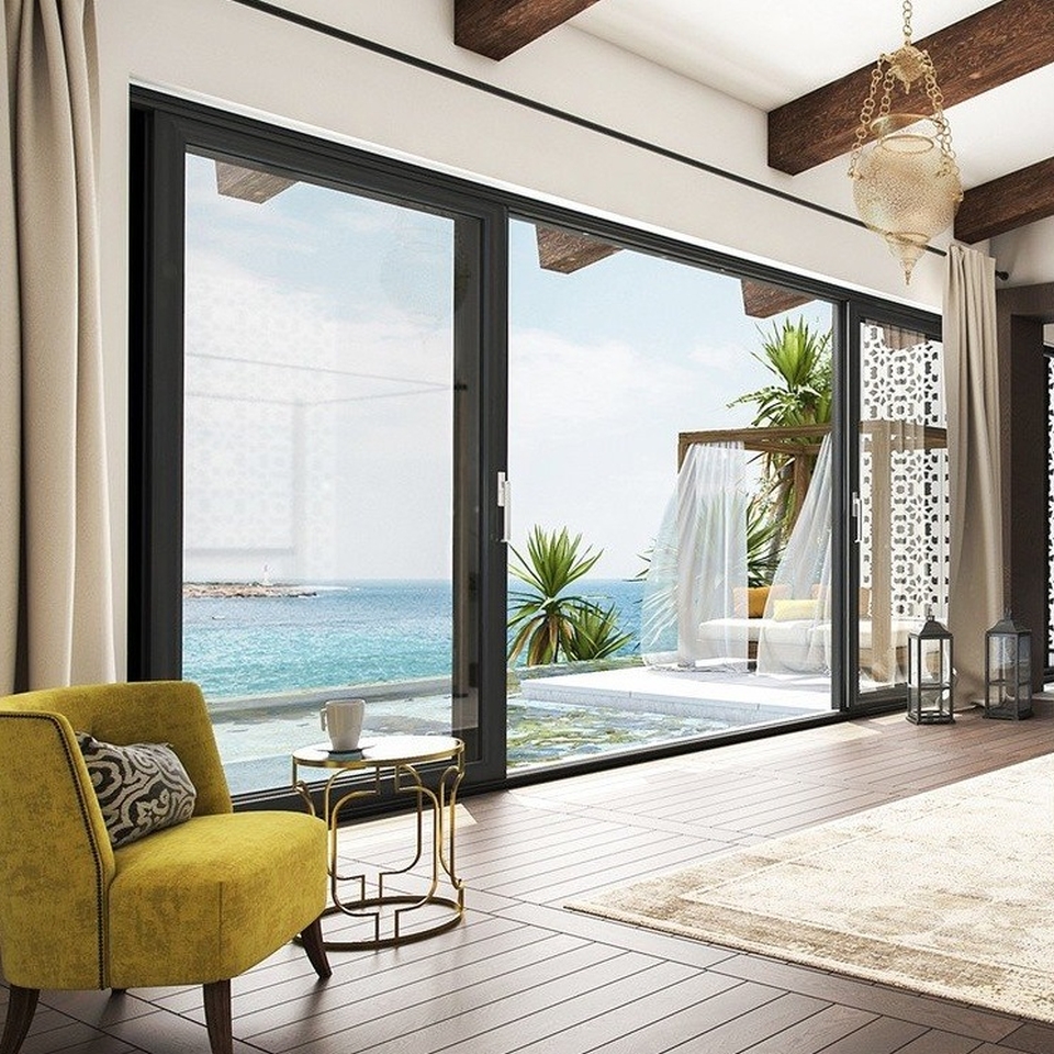 Mit einer Breite von bis zu 9 Metern bilden 4-teilige Hebeschiebetüren erstaunliche Terrassentüren, die die Natur direkt ins Wohnzimmer bringen. Auch an Wintertagen, wo das Wetter schlecht ist, ermöglichen 4-flügelige Hebeschiebetüren einen großen Lichteinfall. Sie vermitteln ein Gefühl als wäre man draußen. Zudem offerieren sie einen erstaunlichen Panoramaausblick.