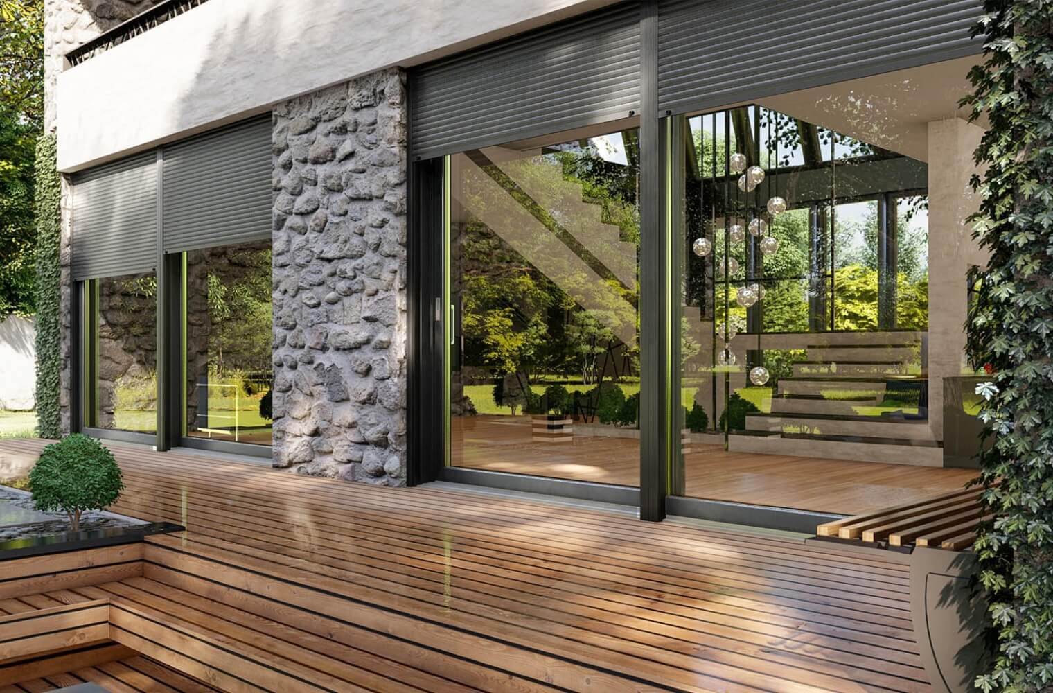 Terrasse mit Hebeschiebetür mit Aufsatzrollladen