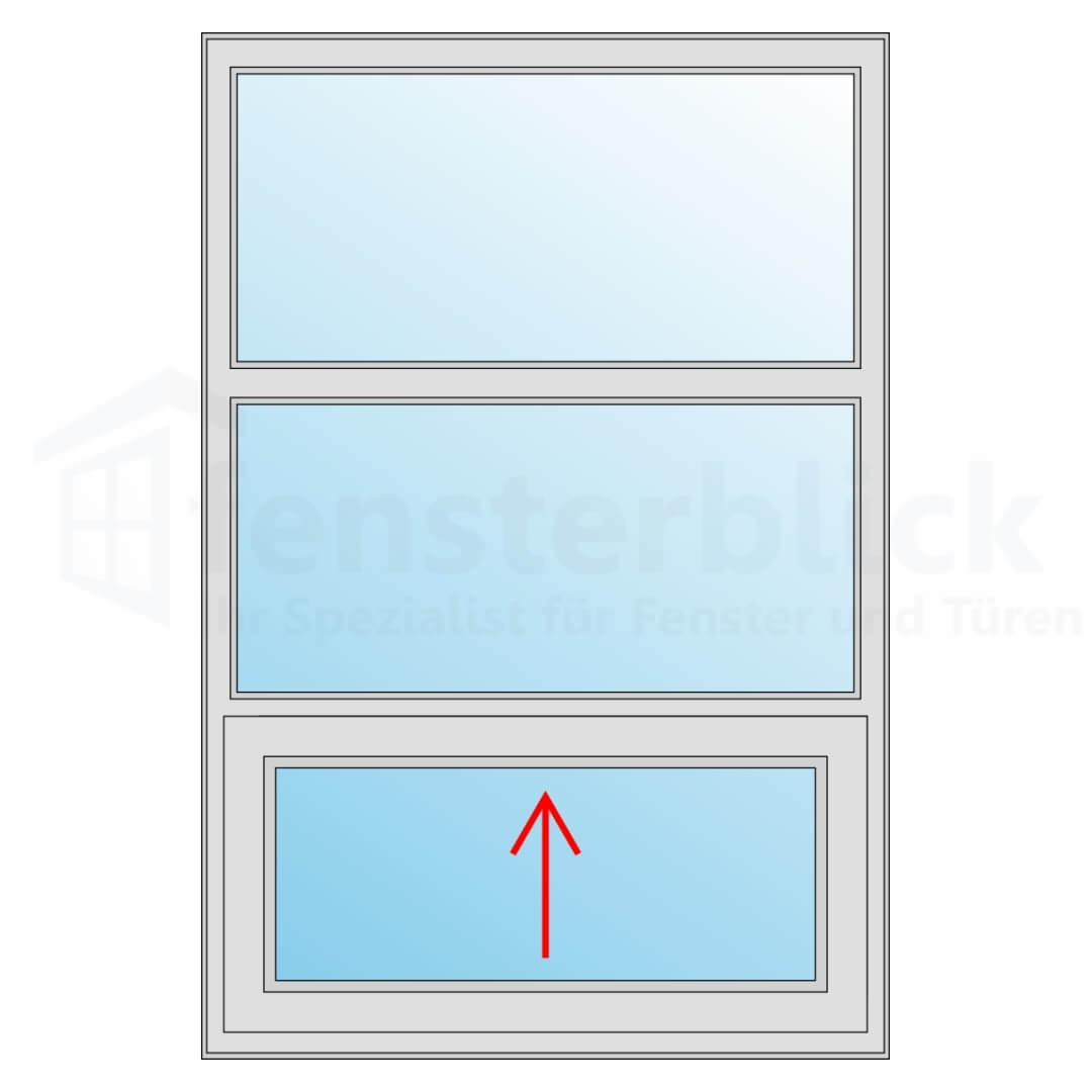 Hierbij wordt de vleugel uit de vergrendeling in de onderste rail omhoog geheven. Om het raam te sluiten, schuift u het weer naar beneden en brengt u het terug in de vergrendelingsstand.