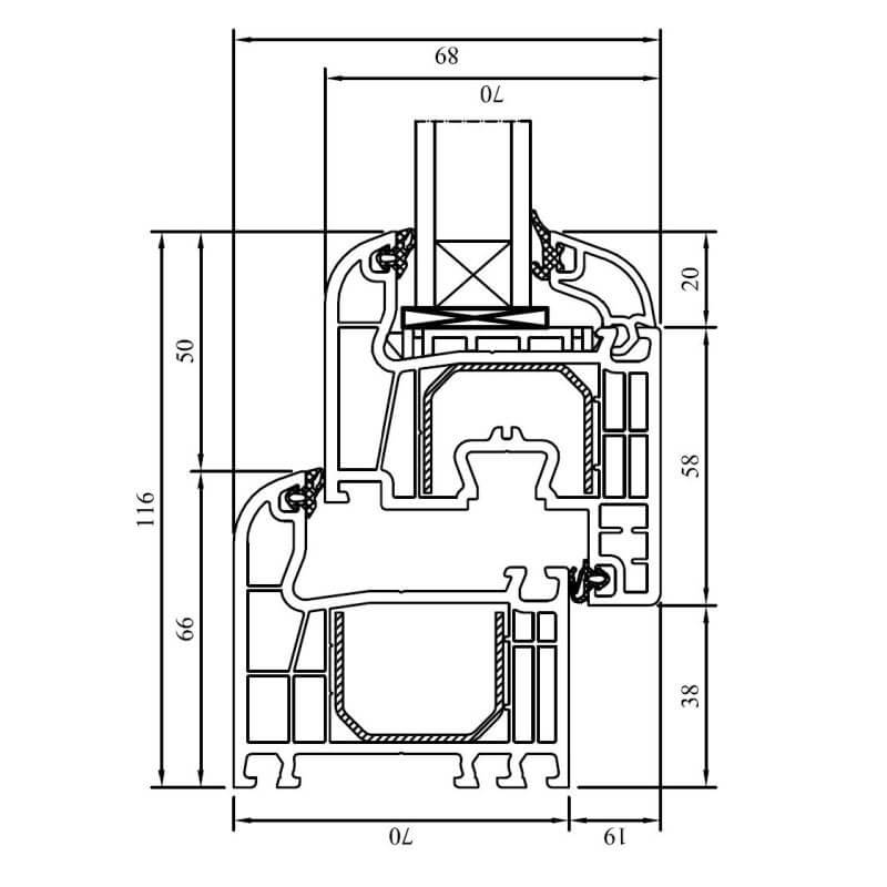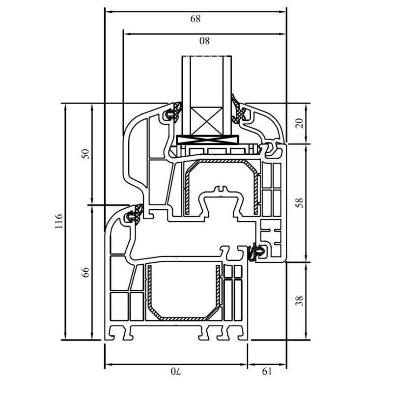 - De uitvoering met een 5-kamersysteem en een inbouwdiepte van 70 mm garandeert uitstekende warmte- en geluidsisolatie