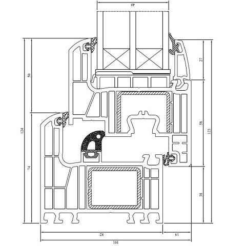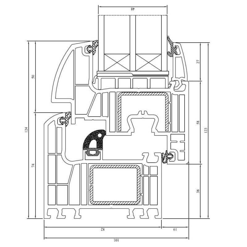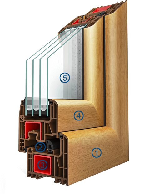 - Het 7-kamersysteem met een frame diepte van 82 mm en een vleugel diepte van 96 mm, evenals de afgeronde vorm aan de buitenkant, optimaliseert de energie-efficiëntie aanzienlijk