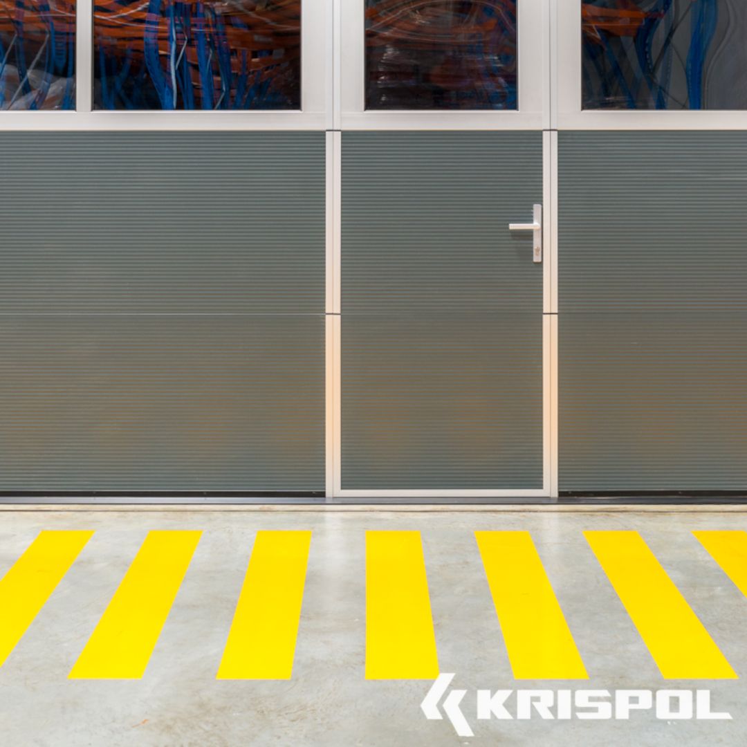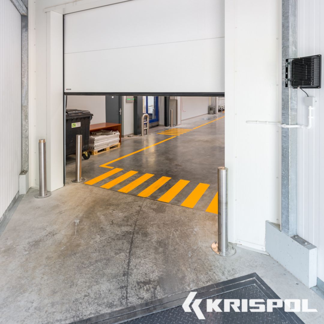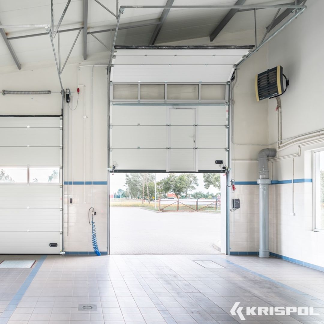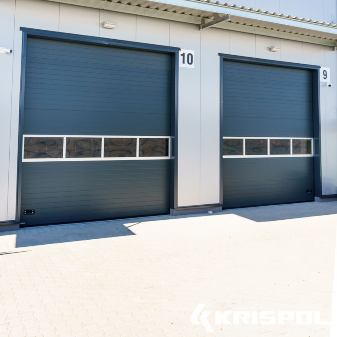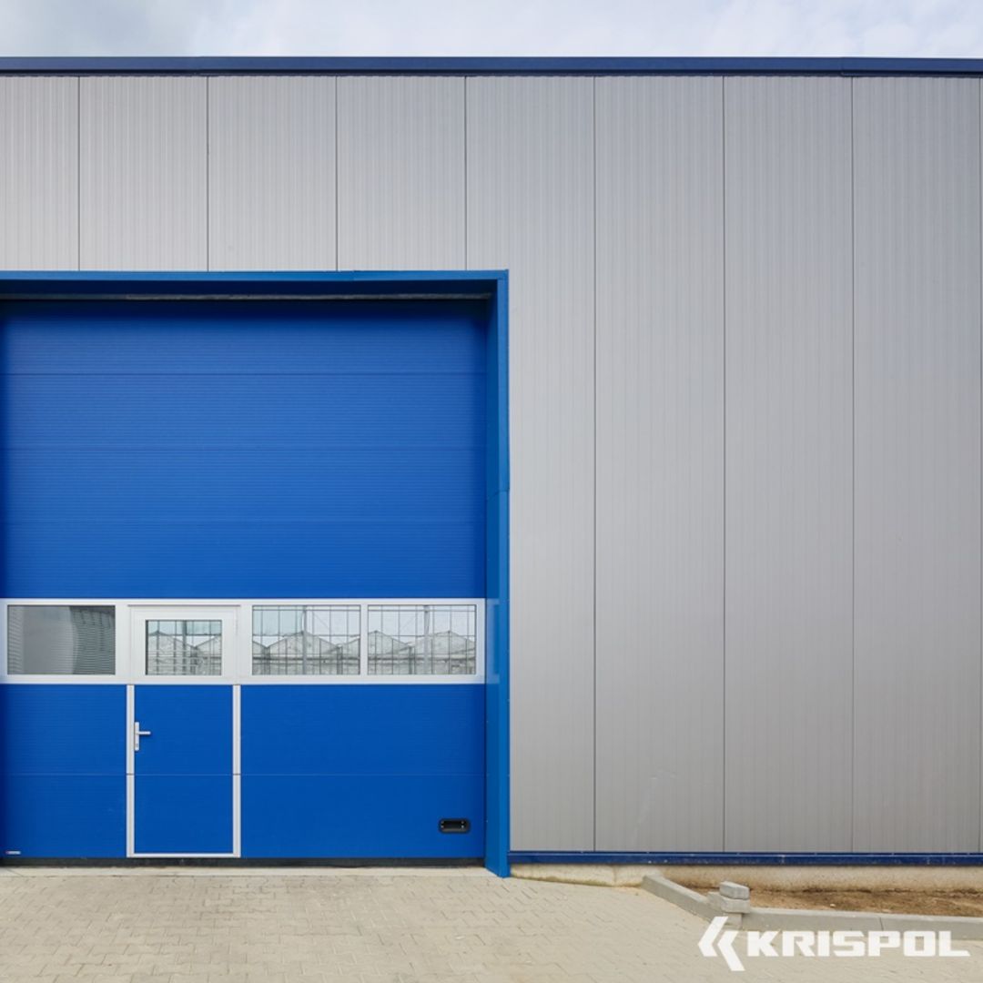 Industrie-Sektionaltor von Krispol mit Lichtband und gelber Fassade