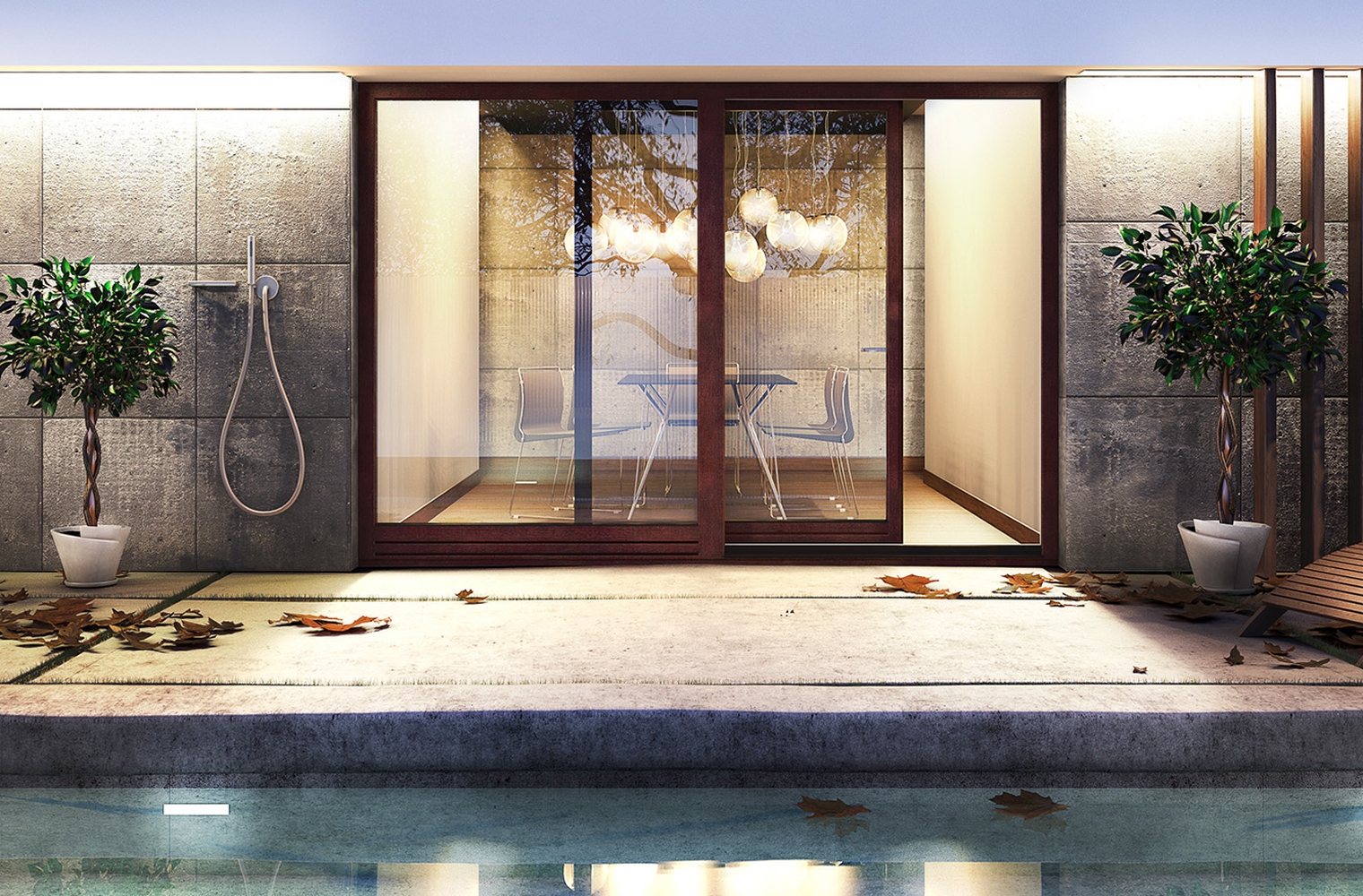 Terrasse mit Holz PSK-Türen in Braun
