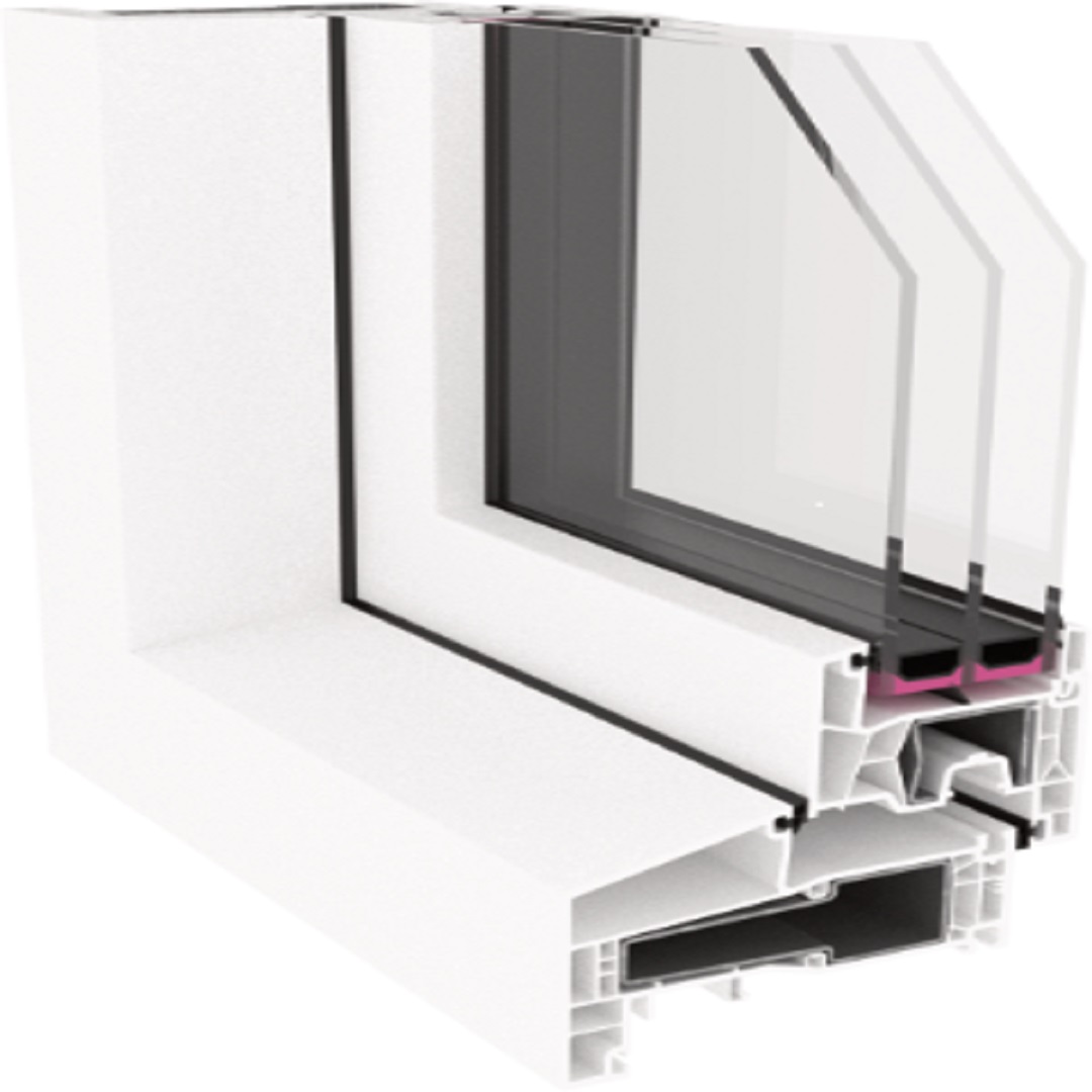 Dieses Profil kombiniert modernes, urbanes Design mit solider Technik. Die 5-Kammer-Konstruktion sorgt für gute Wärmedämmung und eine robuste Struktur, während zwei EPDM-Dichtungsebenen zuverlässigen Schutz gegen Wind und Wetter bieten.