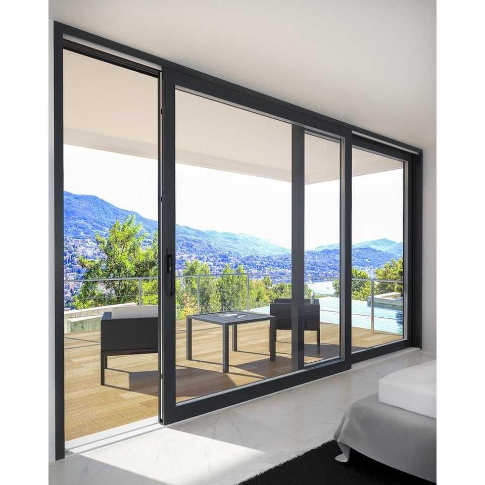 Vooral schuifdeuren laten zich goed combineren met panoramische ramen. Ze nemen bij het openen geen ruimte in beslag en zorgen voor een gemakkelijke toegang naar buiten. Onze klanten bestellen balkon- of terrasdeuren graag in het raamformaat 200 x 200 cm als tweevleugelige deuren zonder middenstijl.