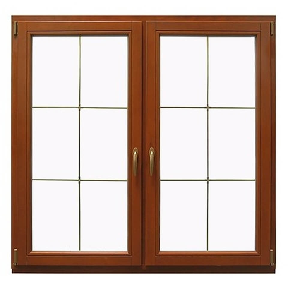 2-vleugelig houten kozijn met binnenliggende roedes