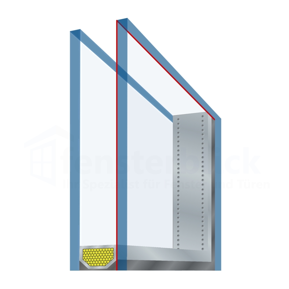 Die Gläser des Isolierglases sind gut verarbeitet und geklebt, sodass keine Luft von außen in den Scheibenzwischenraum (SZR) gelangen kann. Stattdessen wird der SZR nun mit einem Edelgas befüllt, der Kältebrücken verhindern soll, damit eine bessere Wärmeisolierung stattfinden kann. Auch eine 2-fach oder 3-fach Verglasung wird entsprechend der Dämmqualität der Fassaden ausgesucht.
