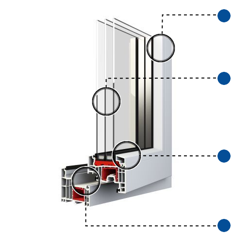 6-Kammersystem mit einer Bautiefe von 92 mm und großer Verstärkungskammer.