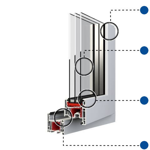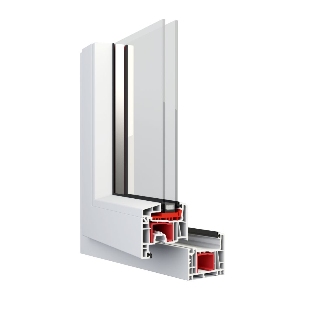 5-Kammerprofil-System mit einer Bautiefe von 76 mm und großer Verstärkungskammer.
