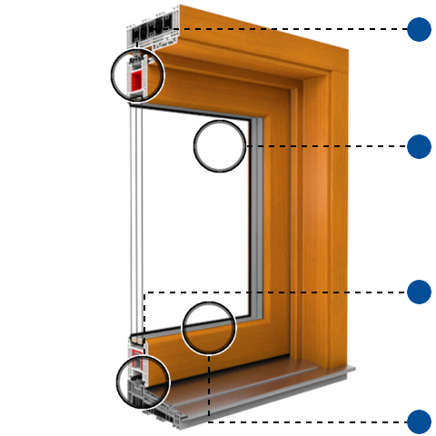 3-fach Verglasung im Standard, 4-fach Verglasung möglich für zusätzliche Wärmedämmung. Optionale Scheibenpakete für zusätzlichen Schallschutz.