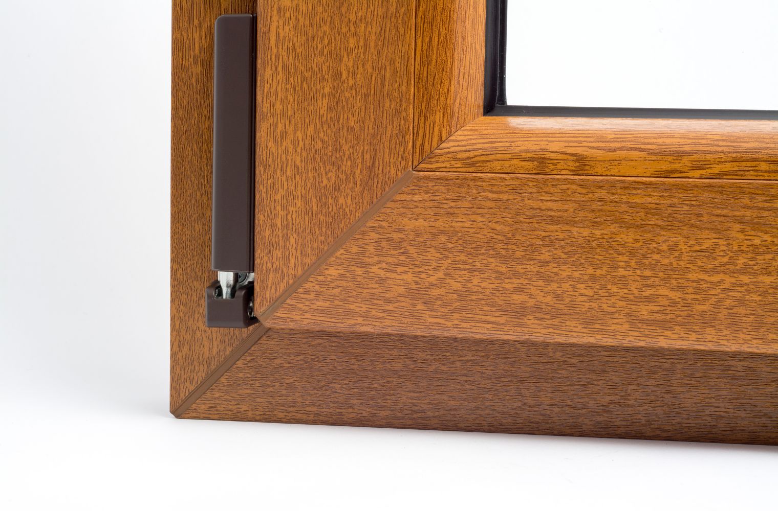 Die herkömmliche Schweißnaht ist durch eine kleine Vertiefung in den Ecken von Rahmen und Fensterflügel gut sichtbar. Dies ist bei weißen Fenstern nicht weiter tragisch, aber beim Einsatz von Dekorfolien kommt es in diesem Bereich immer zu leichten Farbunterschieden.