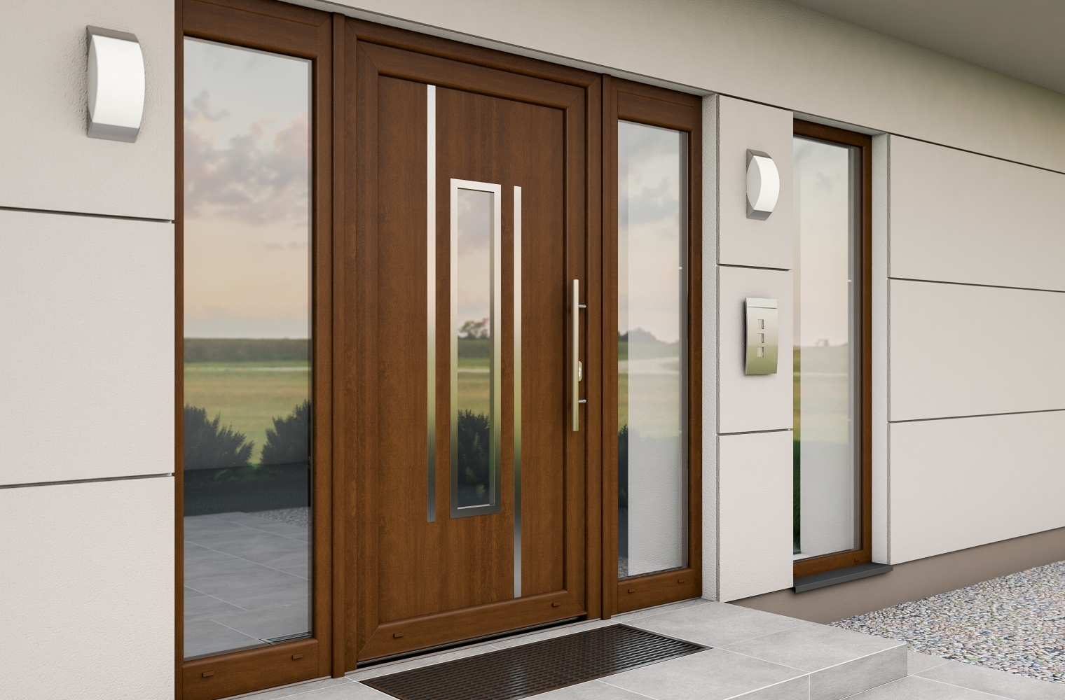 Schöne Seitenteil-Verglasungen für einen freundlichen Hauseingang