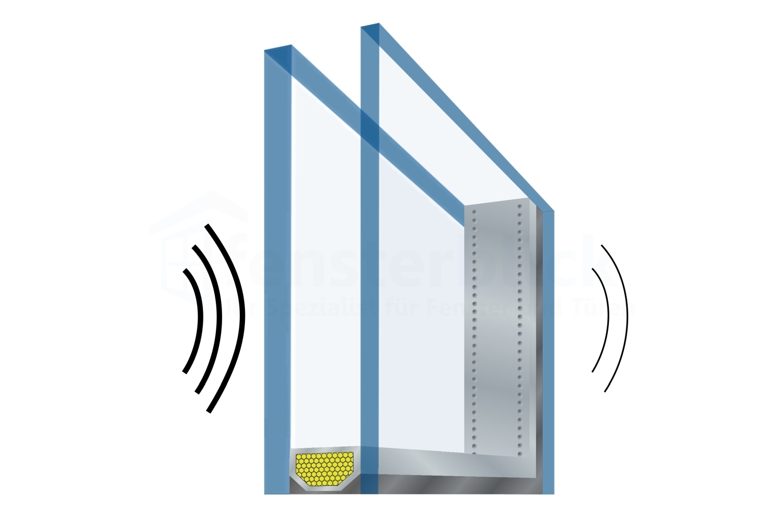 Das Fenster stellt das durchlässigste Element der Gebäudehülle dar. Insbesondere durch die Glasscheibe können Schallwellen in die Wohnung gelangen. Ausschlaggebend für guten Schallschutz sind verschiedene Glasdicken und Glasscheiben-Abstände. Denn insbesondere die asymmetrische Konstruktion der Verglasung schütz Sie ideal, da so viele verschiedene Schall-Frequenzen absorbiert werden können.