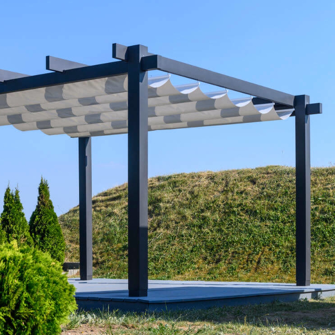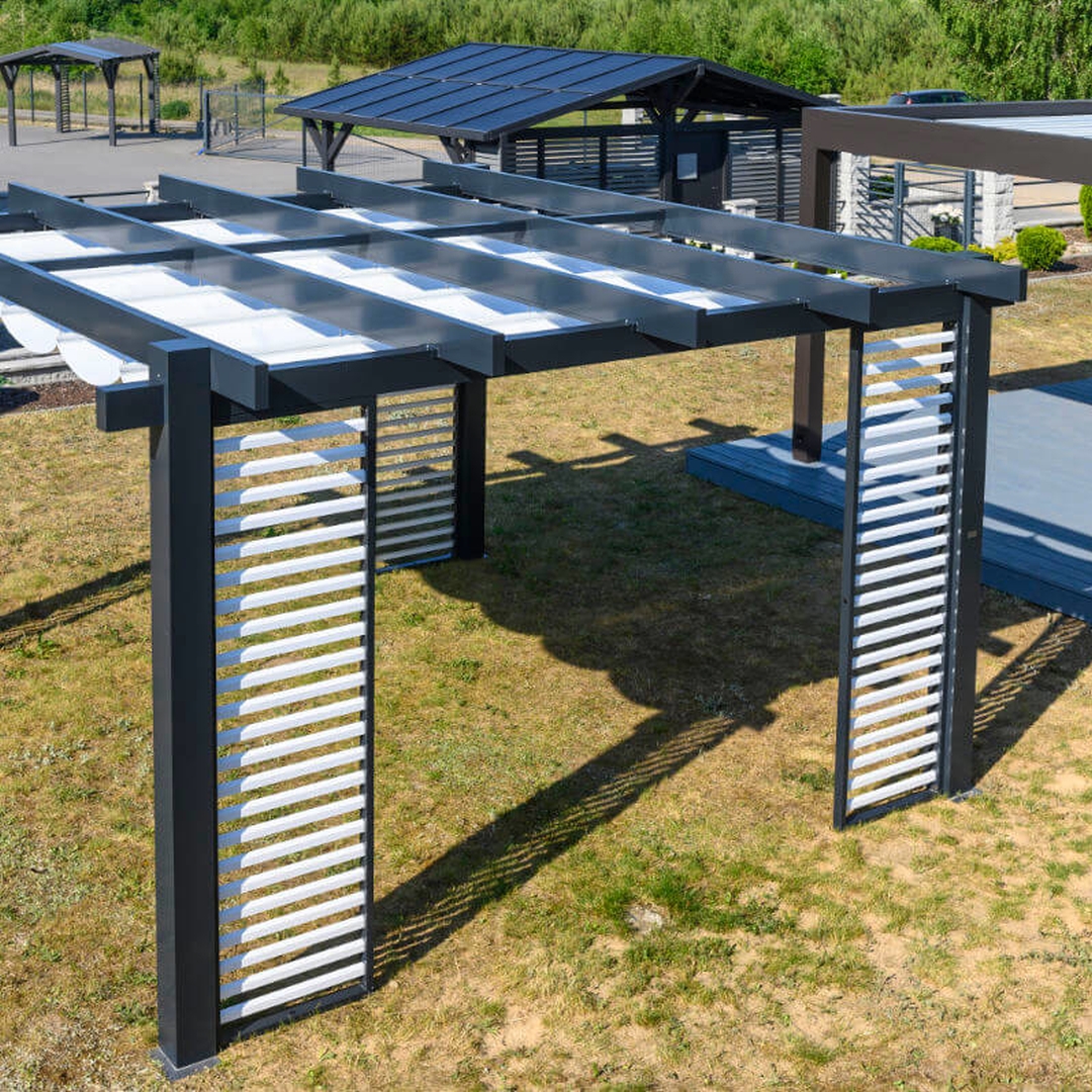 Feste Lamellen: Bieten dauerhaften Schutz vor Sonne und Regen und verleihen der Pergola einen markanten, modernen Look.