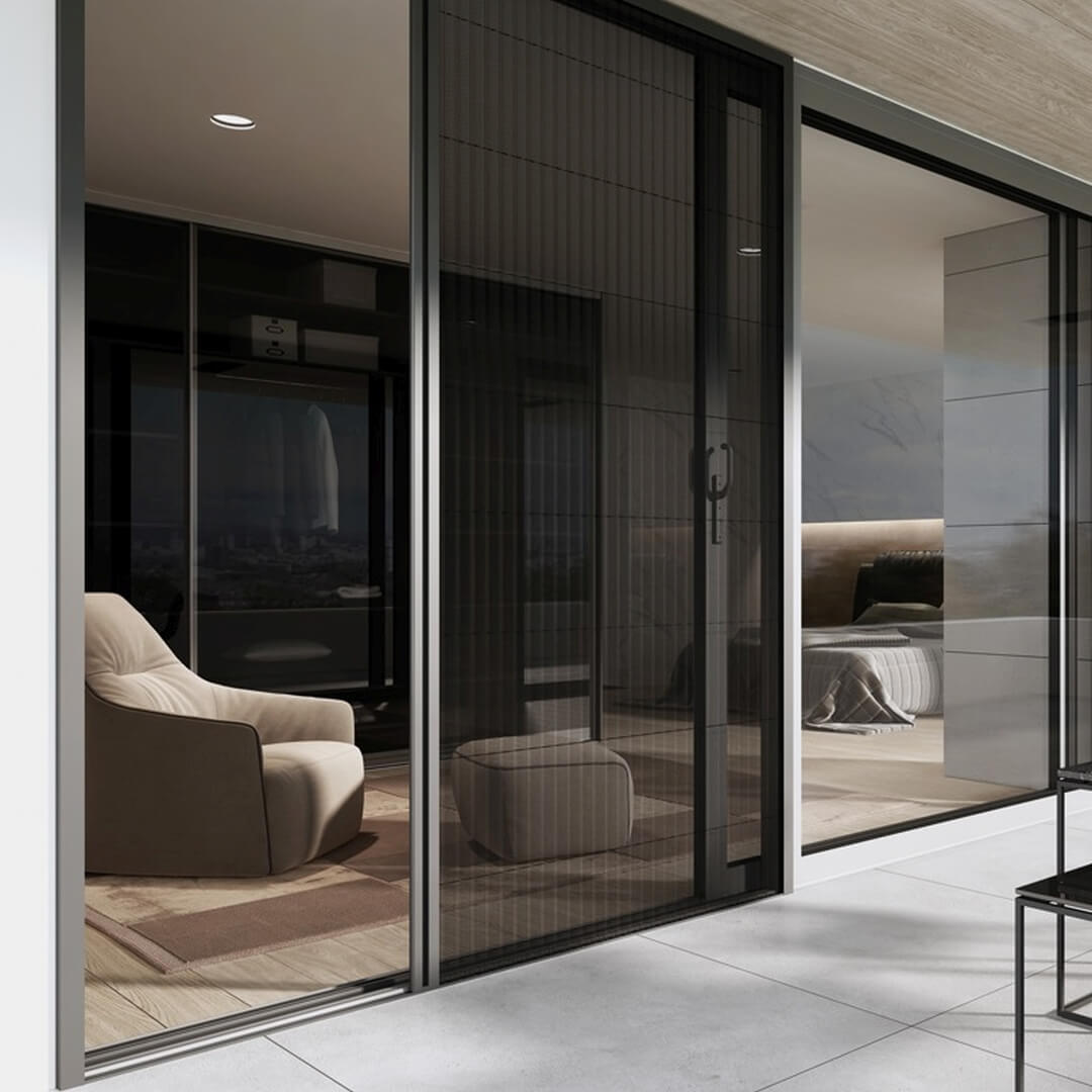 Das System MPH HARMONY bietet flüssiges Schieben und ermöglicht das Anhalten des Plissees in beliebiger Position. Eine niedrige Schwelle sorgt für einen ungestörten Übergang. Die Konstruktion aus stranggepresstem Aluminium gewährleistet eine lange Lebensdauer und Witterungsbeständigkeit. Das Insektenschutz-Plissee kann in jeder Farbe der RAL-Palette lackiert werden und arbeitet nahtlos mit den Rollladensystemen von Aluprof und der Führungsschiene PPMO 53 zusammen.