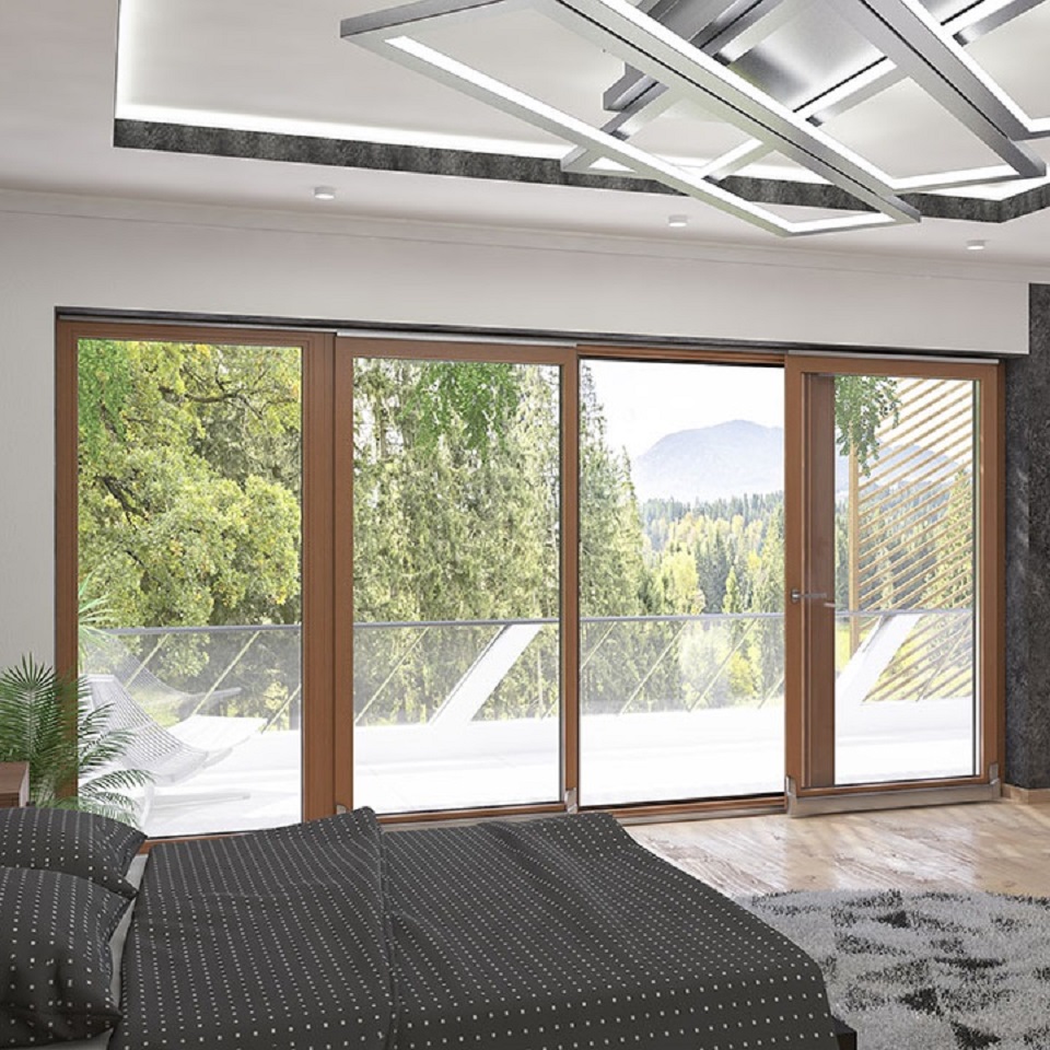 Vierflügelige PSK-Türen eignen sich für große Maueröffnungen bis eine Breite von 3 m. Sie bieten hohen Lichteinfall sowie eine ausgezeichnete Aussicht. Ein automatisches Getriebe, das das Öffnen der Tür erleichtert, wird hier empfohlen. Besonders bei großen PSK-Türen kann das Öffnen und Schließen anstregend werden, wenn die Flügel groß und schwer sind. Ein automatisches Getriebe bietet Komfort im Alltag und wird sich als eine lohnende Investition erweisen.