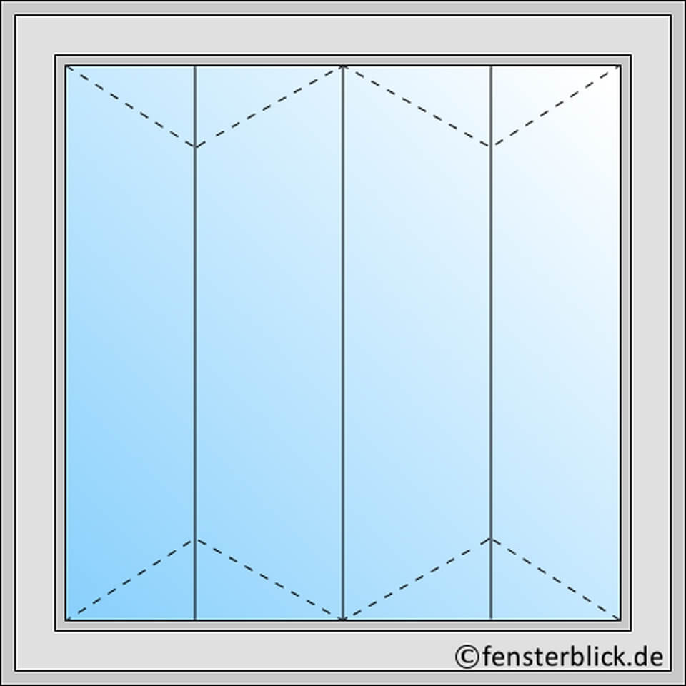 Faltschiebefenster nehmen eine Sonderstellung ein. Sie bestehen aus mehreren einzelnen Fensterelementen, die dank stabiler Führungsschienen und exzellenten Beschlägen Stück für Stück zur Seite geschoben werden können. So genießen Sie einen unverfälschten Panoramablick und können die gesamte Breite der Maueröffnung frei nutzen. In den technischen Zeichnungen werden Faltfenster mit Zick-Zack-Linien markiert.