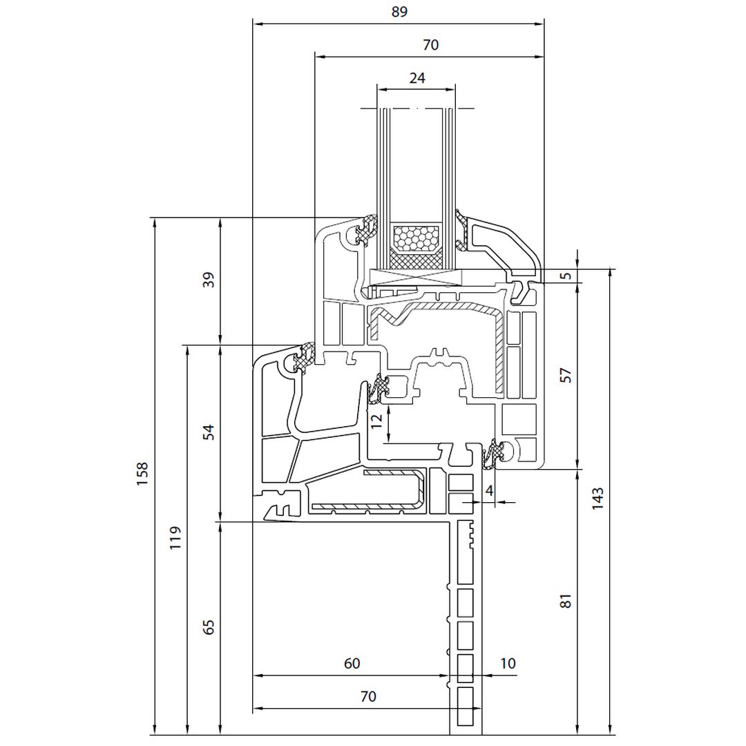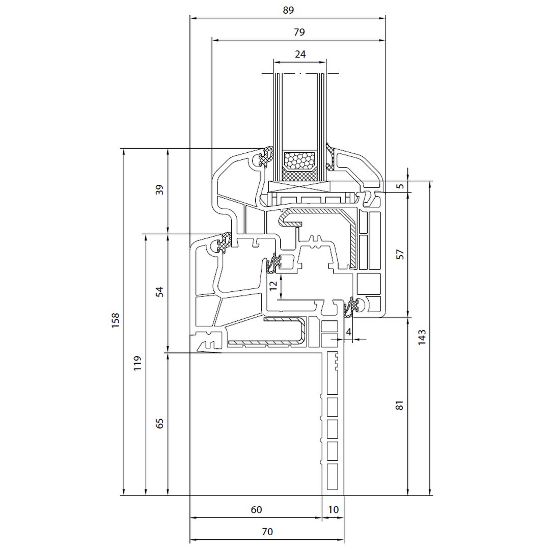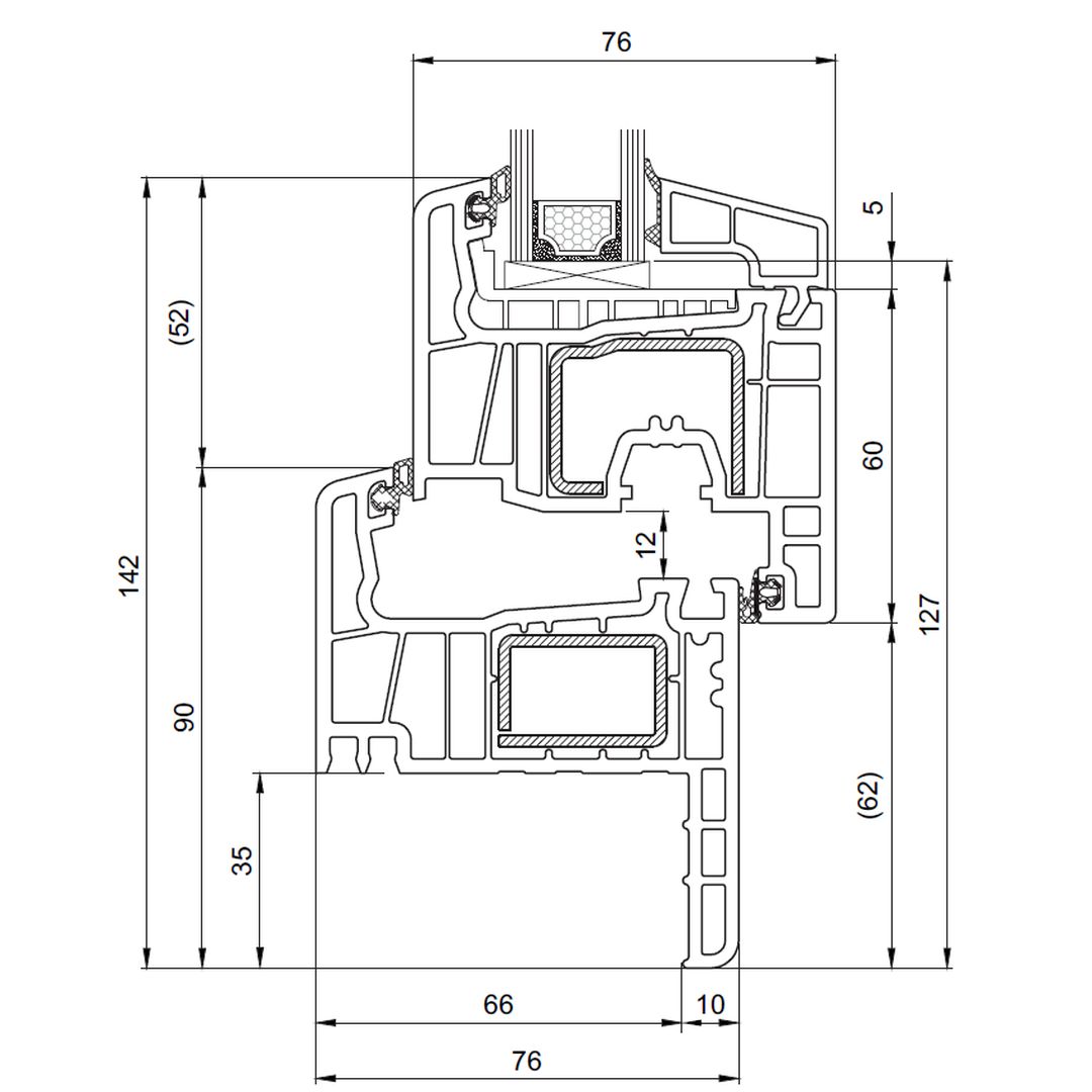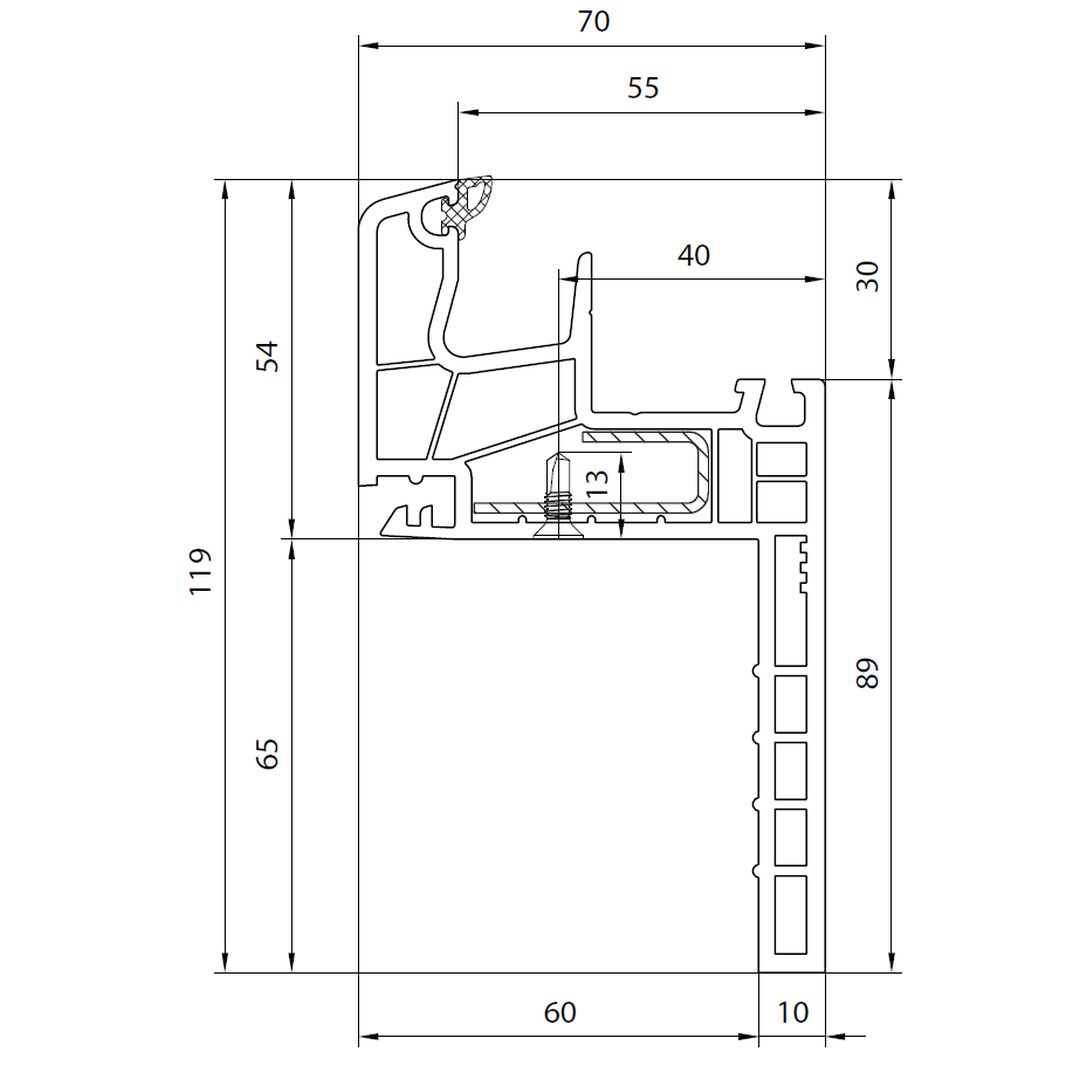 Reno-profiel (Classic-Line) – 60 mm afdekrand – met 115 mm kozijnkader