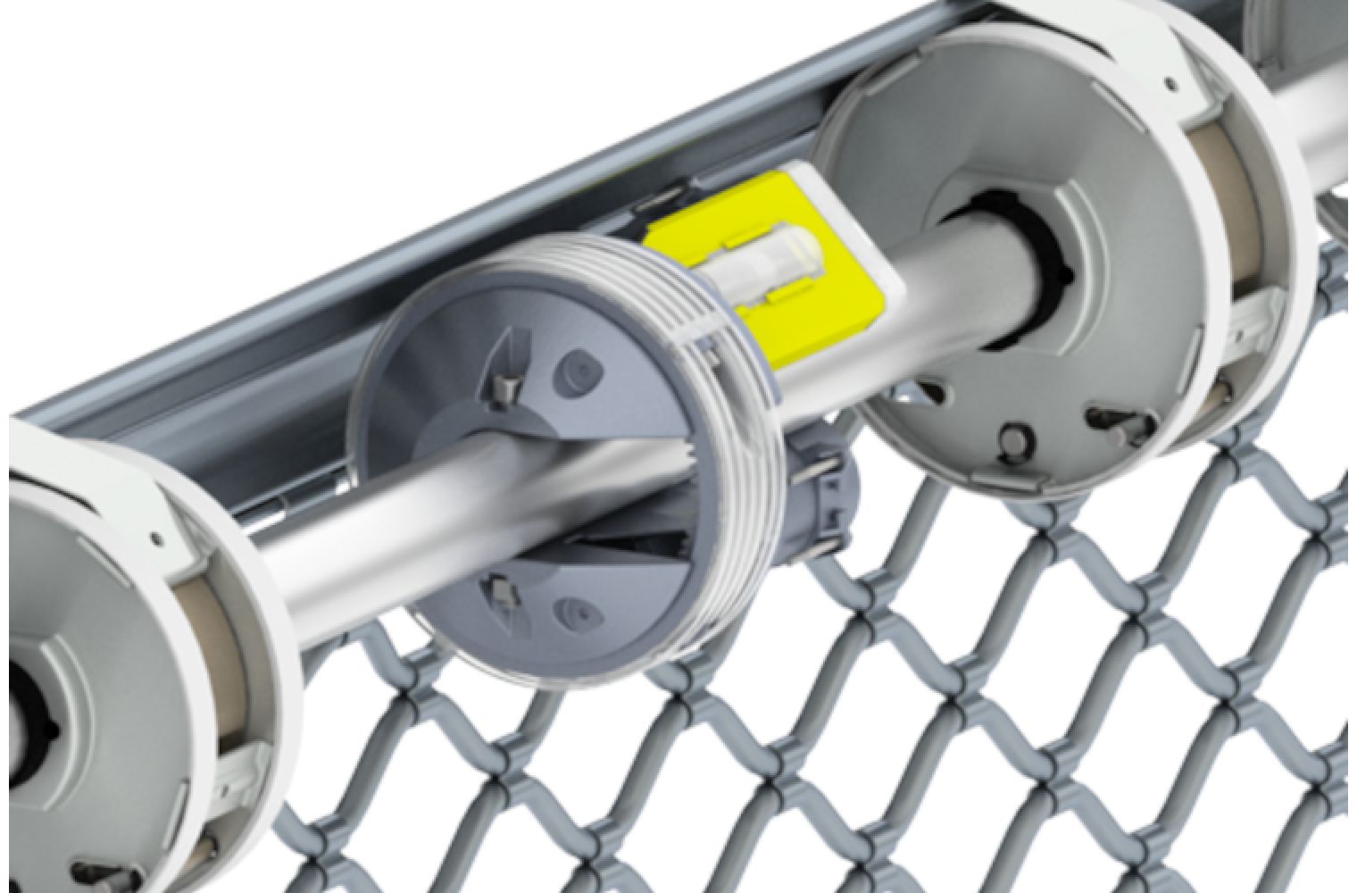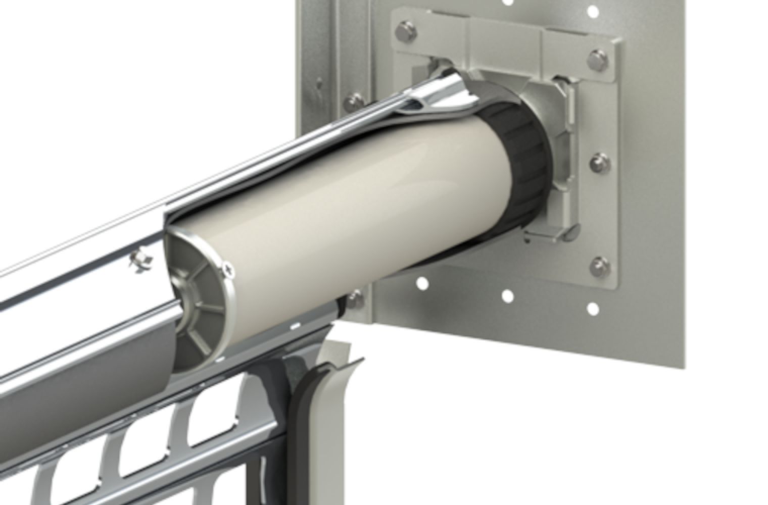 Der seitliche Einphasen-Rohrantrieb benötigt nicht viel Platz an der Decke und kann bei wenig Einbaufläche an der Decke verwendet werden.