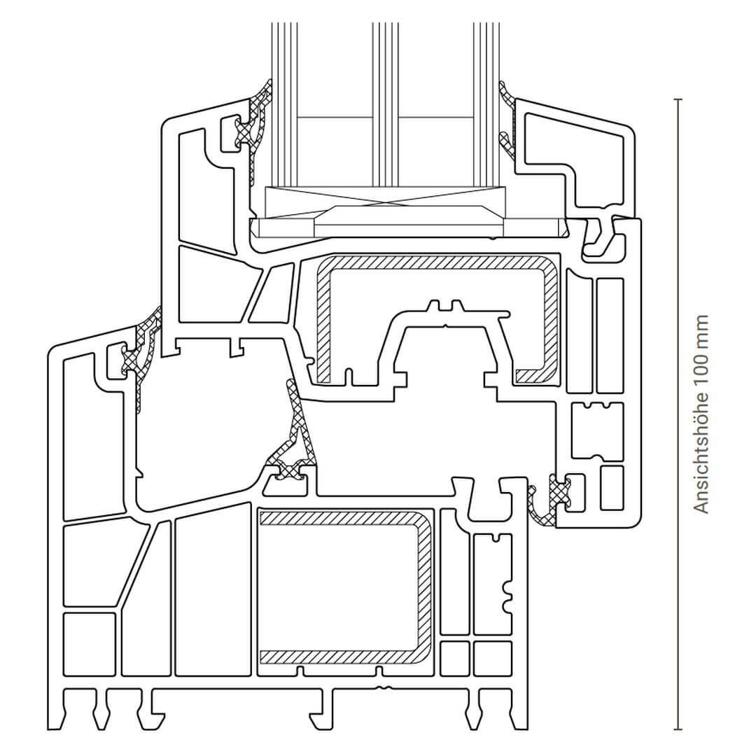 Das Fenstersystem verfügt über ein 5/6-Kammer-Profil mit Anschlag- und Mitteldichtung bei einer Bautiefe von 76 mm. Dadurch erreicht es eine hohe Wärmedämmung mit einem U-Wert bis zu 0,74 W/(m²K) und kann eine Verglasung bis zu 48 mm aufnehmen. Die Schallschutz-Eigenschaften sind ebenfalls beeindruckend, mit einer Schallreduzierung von bis zu 47 dB. Nicht nur der Lärm bleibt draußen, sondern auch ungebetene Gäste mit der hohen Einbruchhemmung. Das macht es zu einem sicheren und zuverlässigen Fenstersystem, das vor Einbrechern schützt und das Sicherheitsgefühl der Bewohner erhöht. Darüber hinaus ist das System kompatibel mit evoCore, einem innovativen System nach Passivhausstandard ift Rosenheim, wird der Dämmwert des Fensters noch einmal deutlich verbessert und damit der Energieverbrauch Ihres Hauses reduziert.