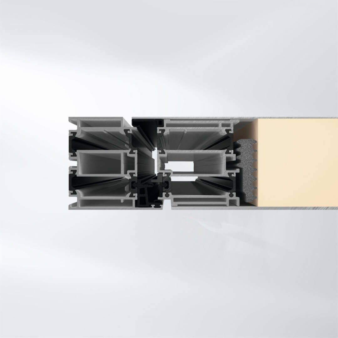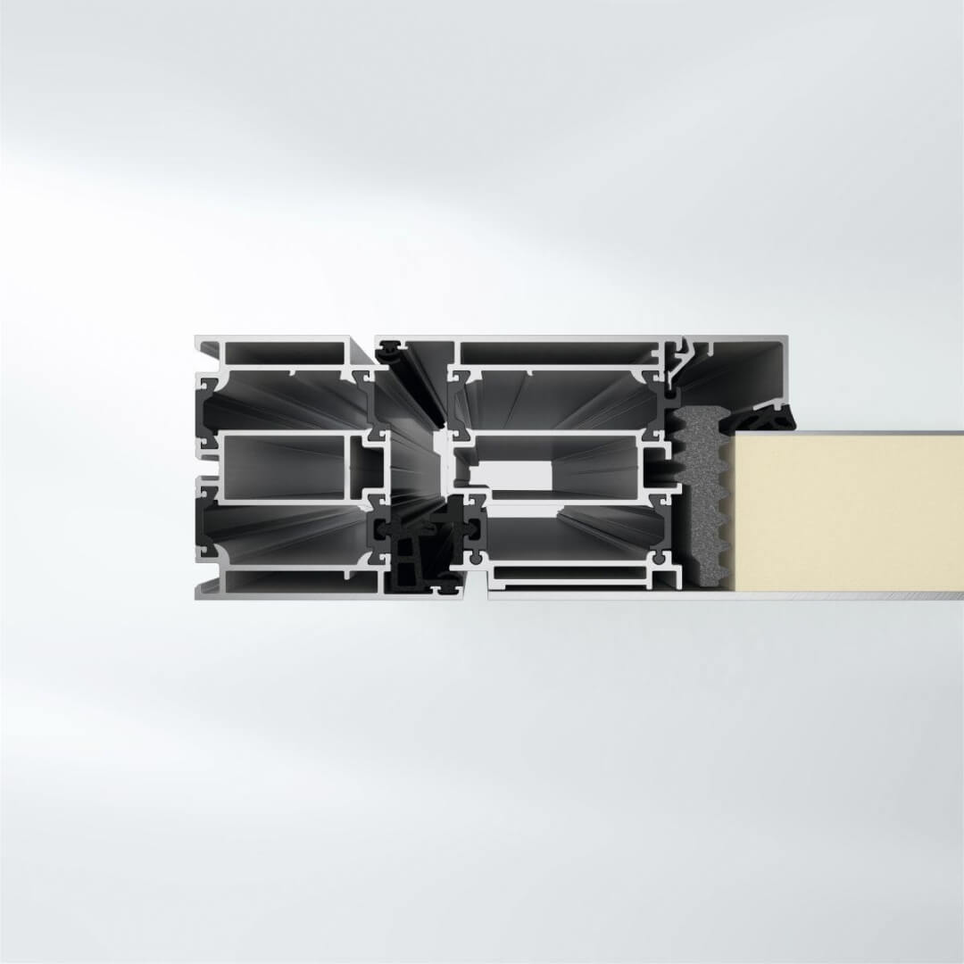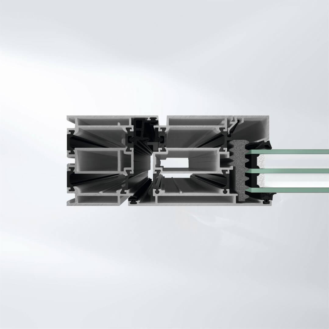 Hochwertiges 5-Kammersystem aus Kunststoff mit einer Einbautiefe von 75 mm für ein elegantes Design.