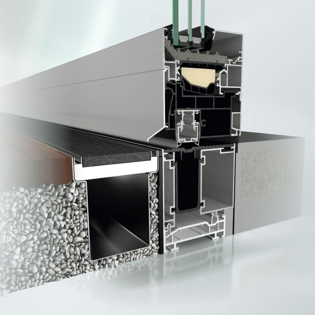 Es bietet ein breites Spektrum an Öffnungsmöglichkeiten, darunter Dreh-, Drehkipp- und Parallel-Schiebe-Kippvarianten sowie barrierefreie Lösungen, und eröffnet durch sein umfassendes Profilportfolio sowohl Eck- und Statikpfosten als auch symmetrische und asymmetrische Pfosten und noch mehr. Zudem ist es möglich Sonnenschutz- und Lüftungssystemen zu integrieren für noch mehr Flexibilität.