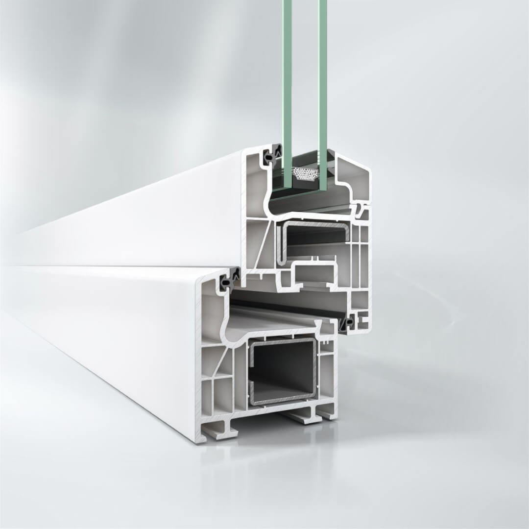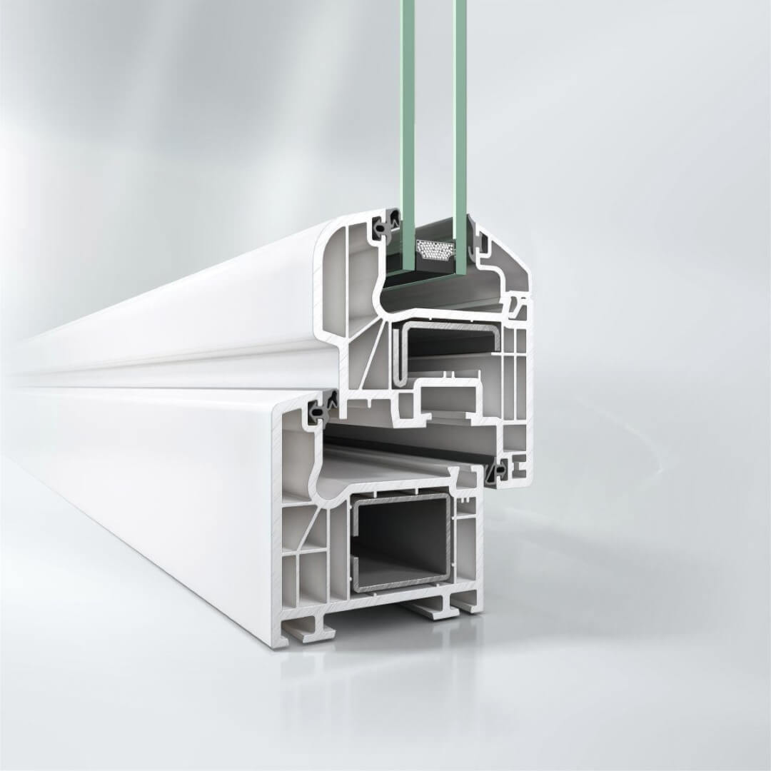 Hochwertiges 5-Kammerprofil mit 70 mm Einbautiefe für eine hervorragende Wärmeisolation und Sicherheit. Große Verstärkungskammer mit stabiler Stahlarmierung.