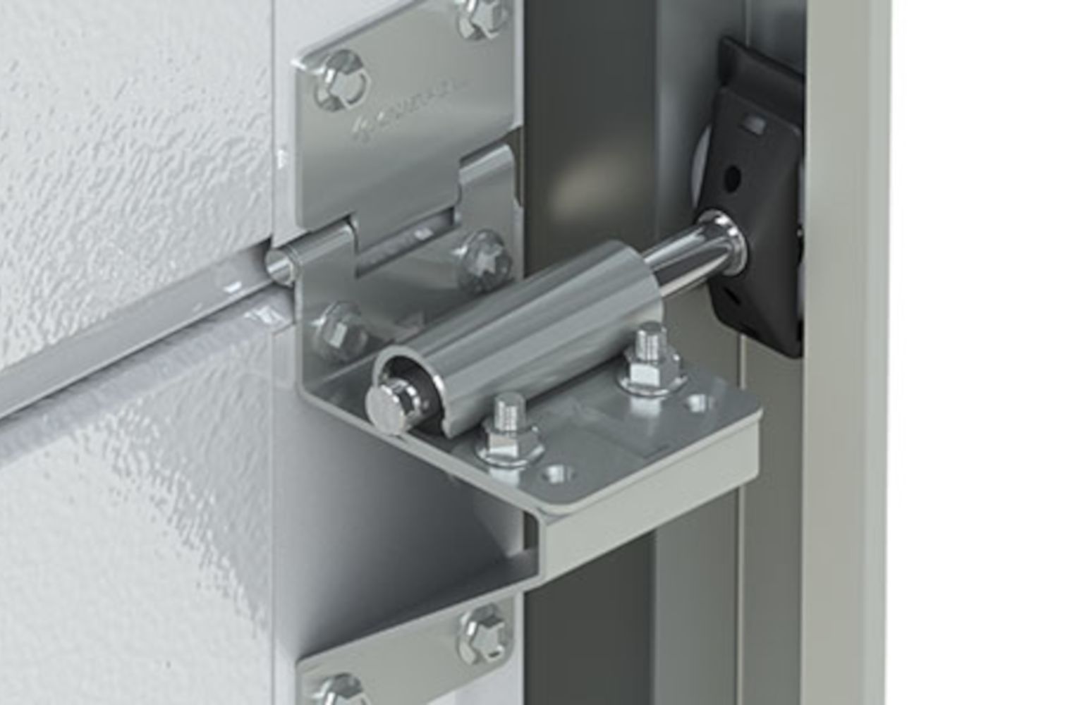 Die Laufrollen können sich mit einer schwarzen Abdeckung in der Führungsschiene abgedeckt werden. Durch eine Verschraubung sind die Laufrollen mit den Sektionen des Tors verbunden.