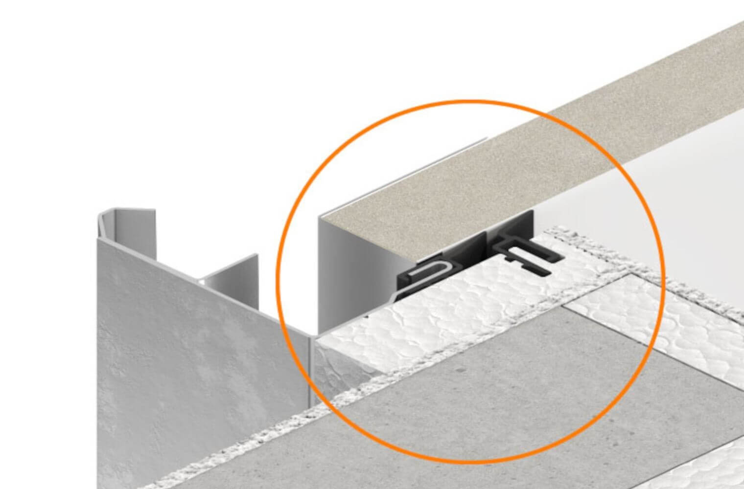 An der untersten Sektion ist ein Aluminium-Profil verschraubt. An diesem wird die Lippendichtung und die Doppellippendichtung montiert, die vor Feuchtigkeit von außen schützen soll.