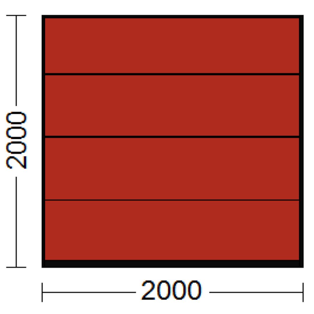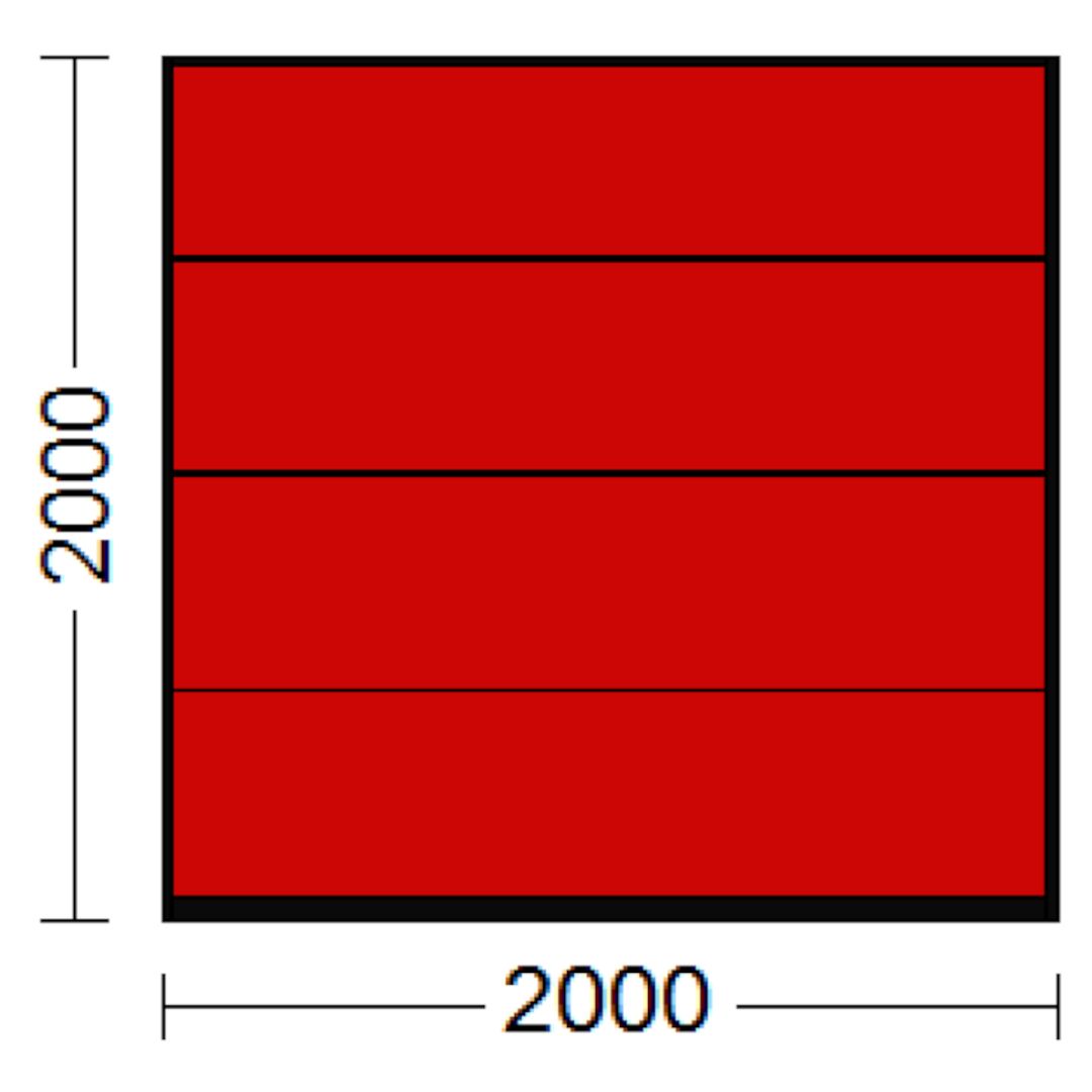 Ein Sektionaltor in Rot kann ganz nach Belieben zusammengestellt werden. Eines jedoch bleibt bei allen Sektionaltoren gleich: die Scharniere. Diese sind nur von der Innenseite des Tors ersichtlich.
