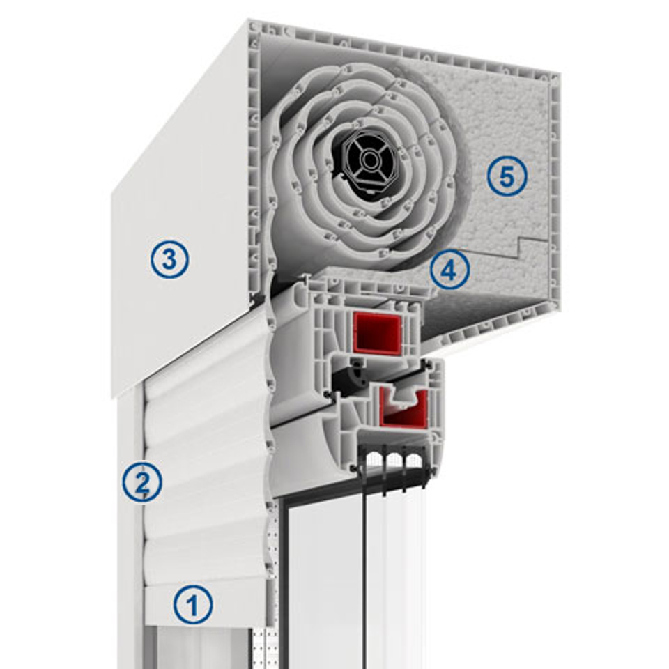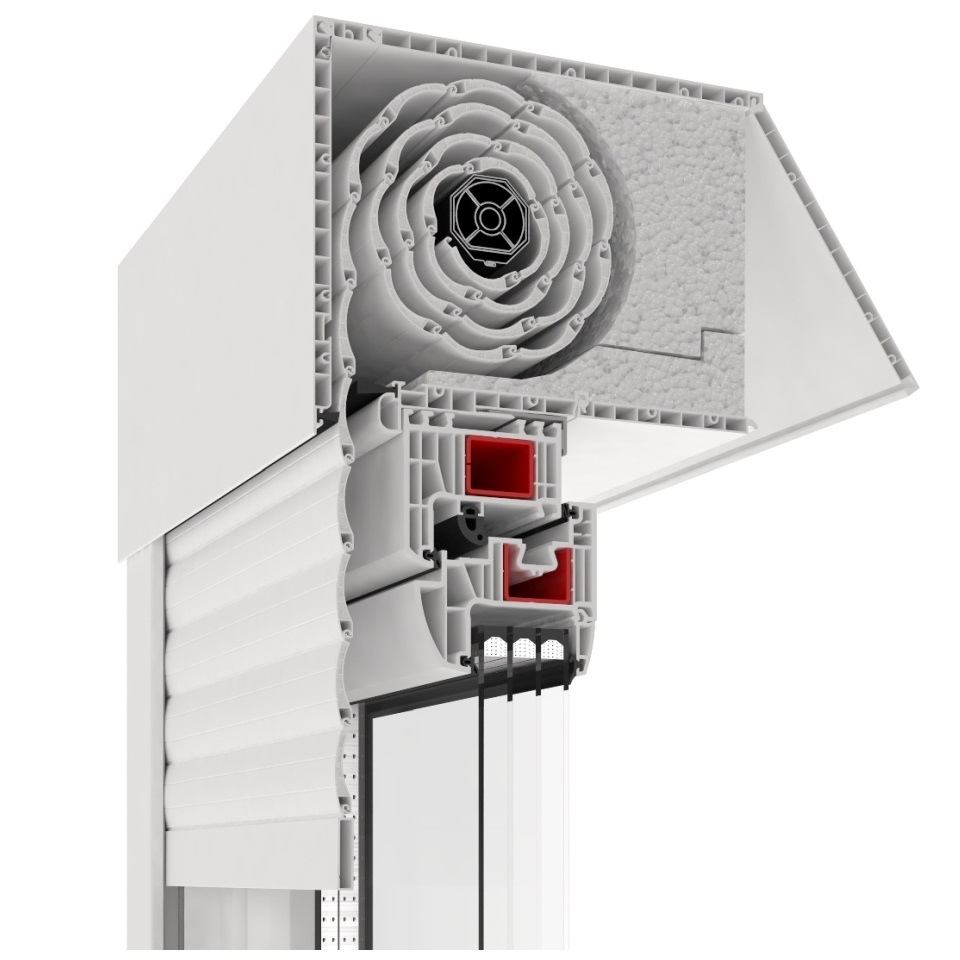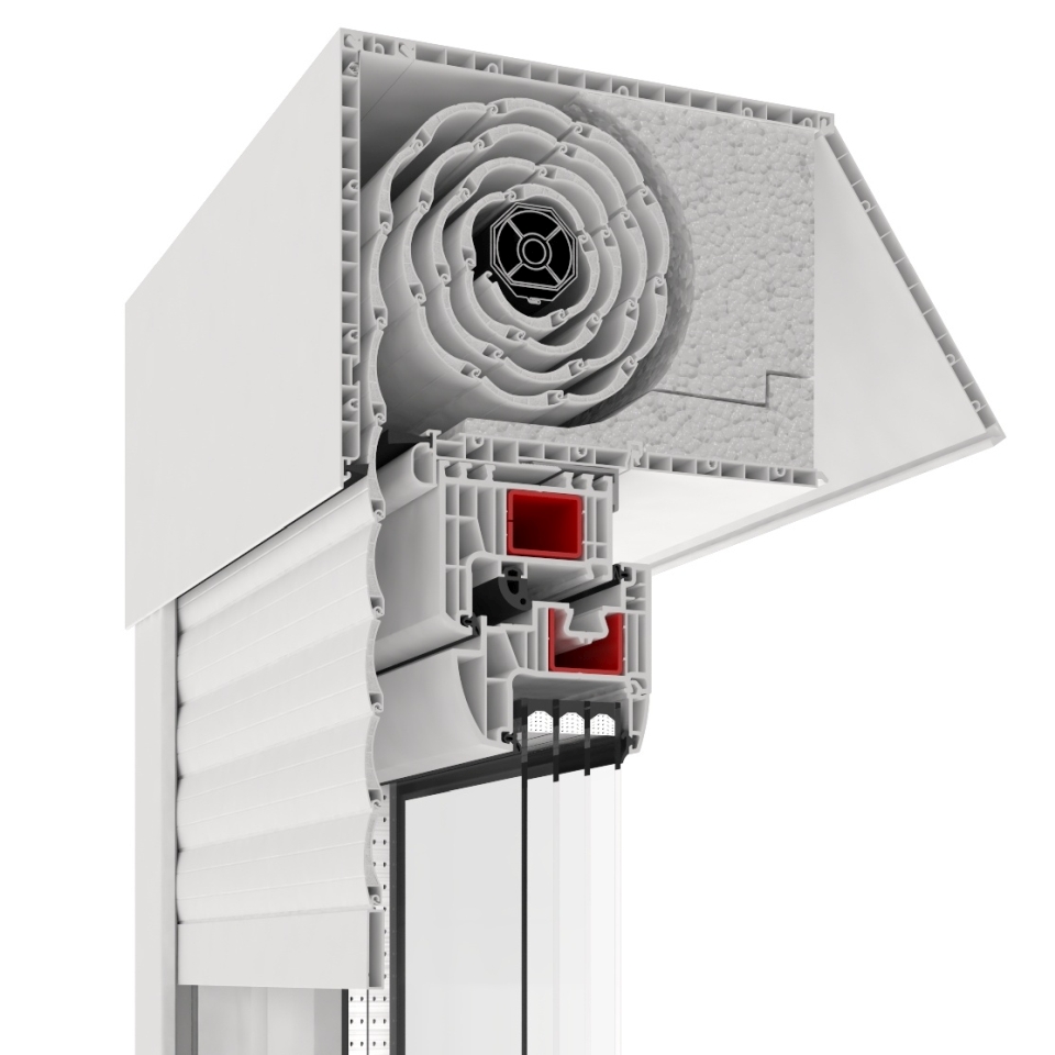 Ebenso ergibt sich ein einheitliches und klares Design, da von außen nur die fordere Kastenabdeckung und die Führungsschienen zu sehen sind, welche optisch mit dem Fenster verschmelzen. Der Rollladenkasten verfügt zudem über eine spezielle Kastendämmung. Der Rollladenpanzer besteht aus einer Reihe von thermisch ausgeschäumten Panzerlamellen aus widerstandfähigem Aluminium. Die Bedienung des Rollladens kann dabei manuell oder durch elektrische Steuersysteme erfolgen.