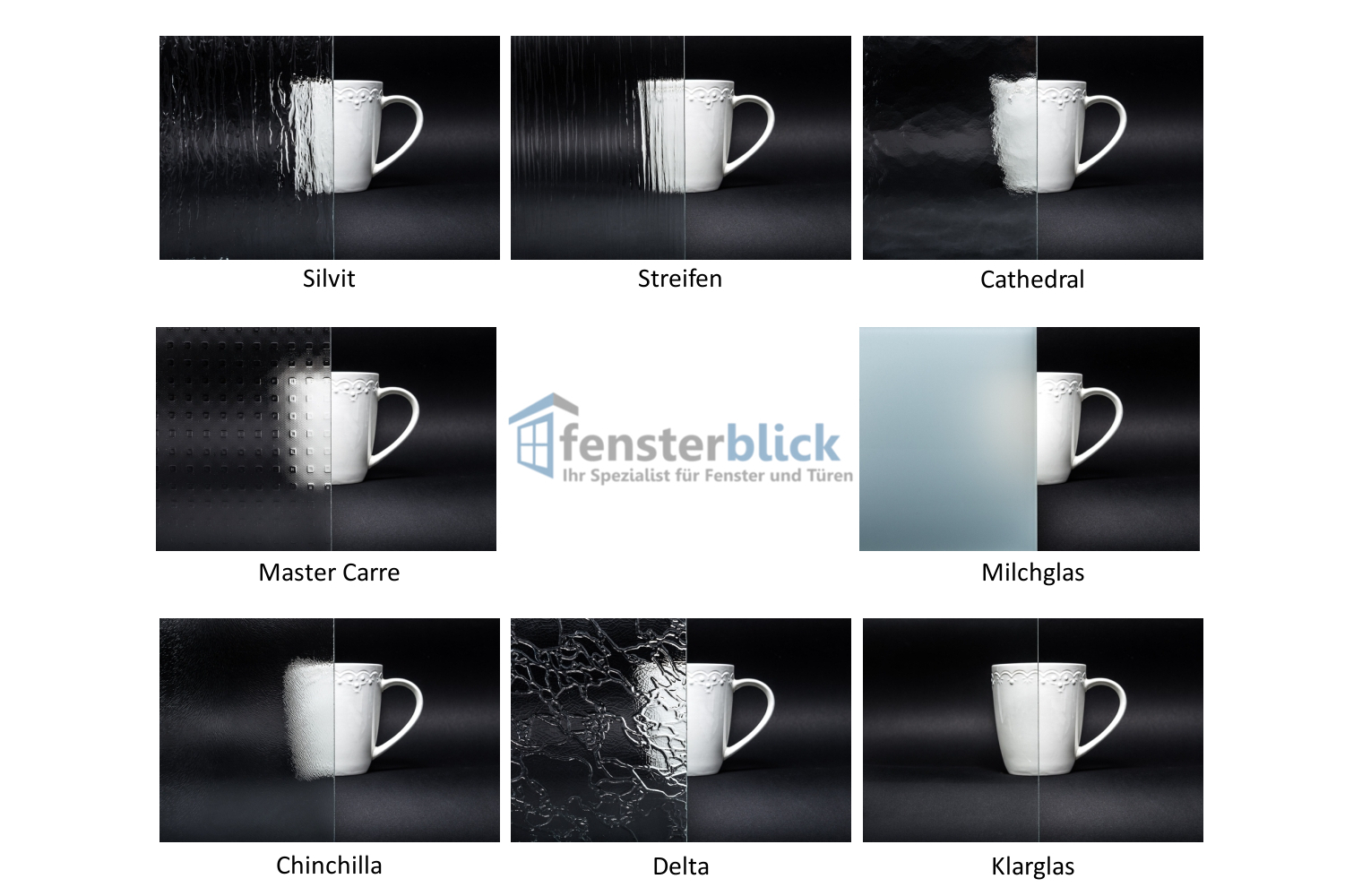 Einfach und bequem Fenster und Türen mit strukturiertem Glas online nach Maß konfigurieren und bei fensterblick.de bestellen.