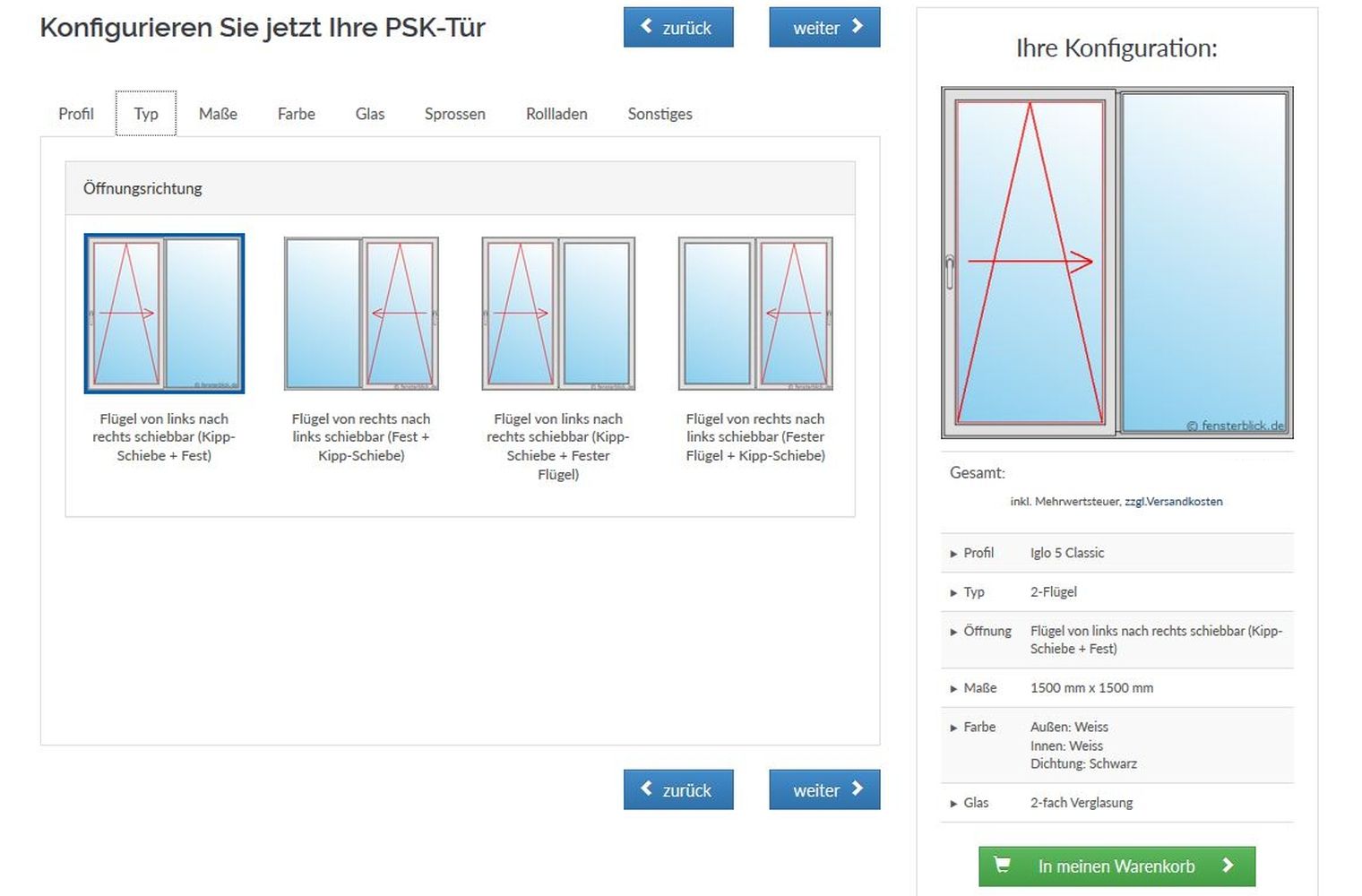 Terrassentür konfigurieren und Kosten berechnen