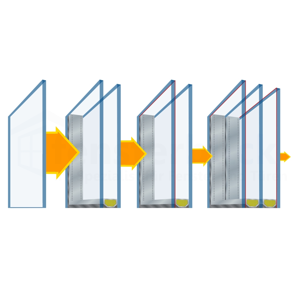 Mit einer hochwertigen Gasfüllung wie Krypton oder Argon kann der U-Wert zusätzlich gesenkt werden. Auch spezielle Low-E-Beschichtungen tragen dazu bei, dass weniger Wärme nach außen entweicht.