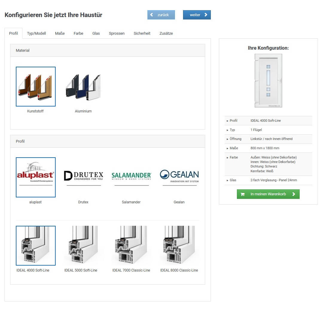 Im Online Haustür Konfigurator können Sie sich transparent den Haustür-Preis anzeigen lassen