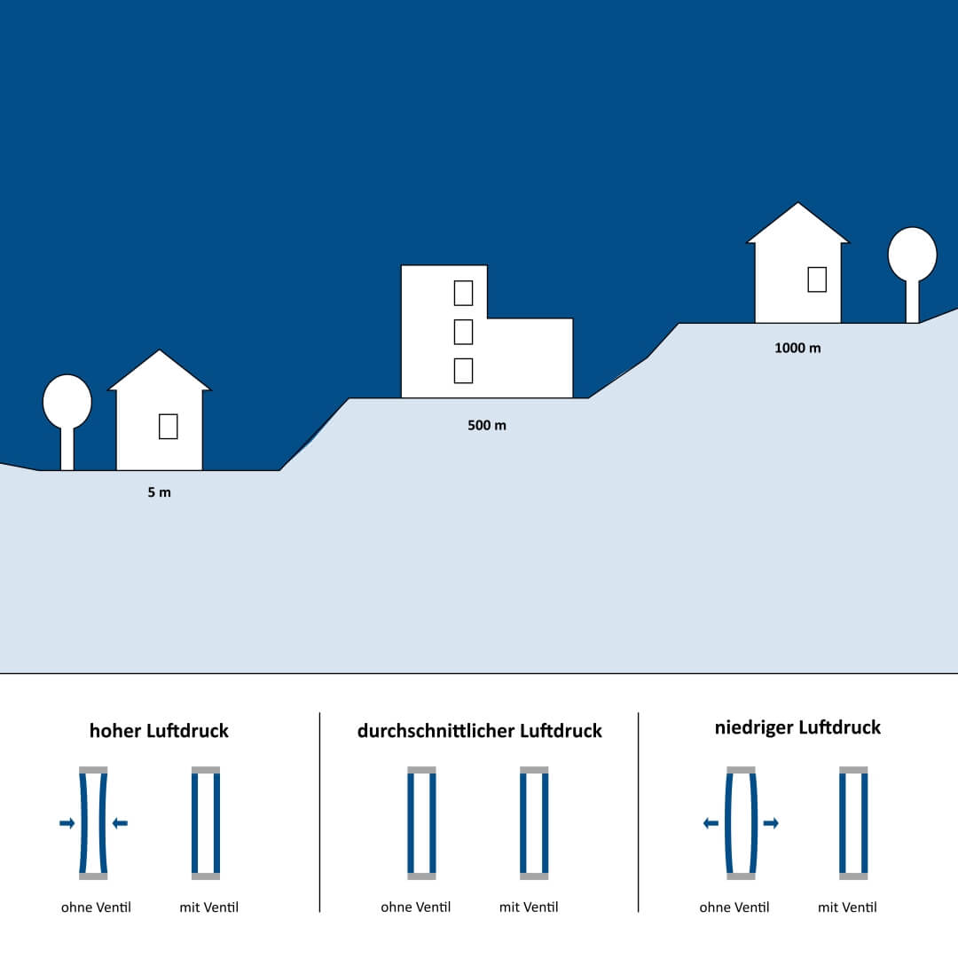 Durch diesen Druckausgleich werden mechanische Spannungen im Glas vermieden, die zu Rissen oder sogar zum Bruch führen könnten. Besonders in Regionen mit extremen Temperaturschwankungen oder in großen Höhen, wo der Luftdruck stark variiert, ist der Einsatz solcher Ventile entscheidend.