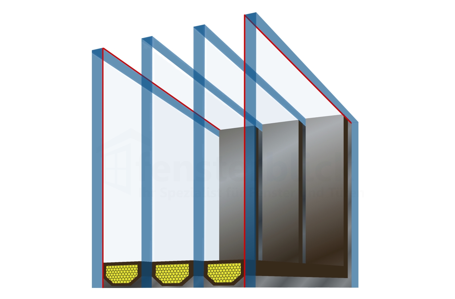 Die zusätzliche Scheibe ist mit einer Low-E-Beschichtung versehen, sodass die 4-fach Verglasung insgesamt drei Thermofloat-Gläser besitzt.