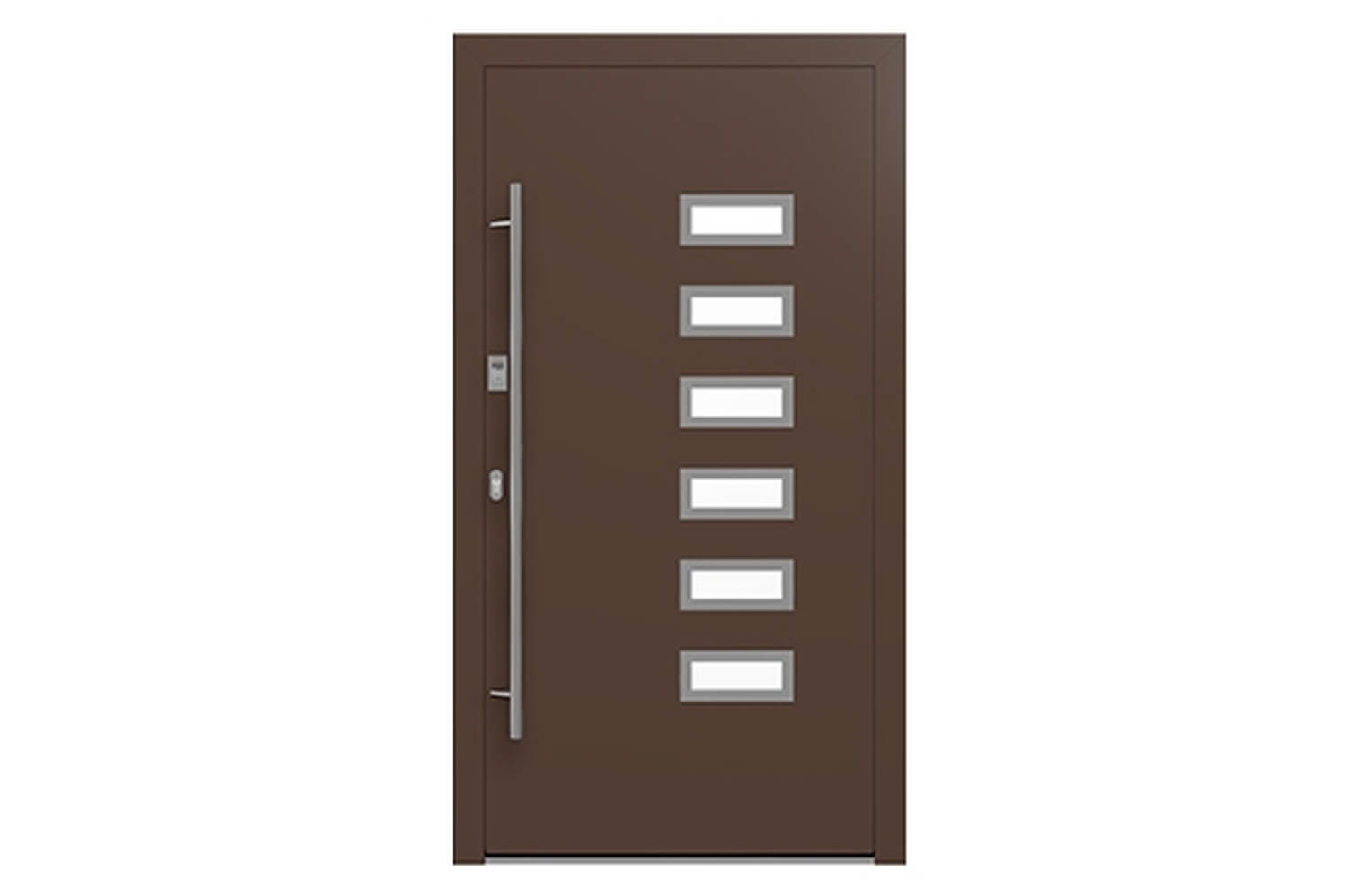 Entdecken Sie die Vielfalt an Materialien und Profilen für unsere Haustüren in Braun. Je nach persönlicher Anforderung reicht das Sortiment vom preisgünstigen Standardprofil aus Kunststoff bis zum Premium-Profil aus Aluminium. Für Kunststofftüren bieten wir Dekorfolien von RENOLIT in verschiedenen Braun-Tönen wie Schokobraun, Schwarzbraun oder Braun Maron an. Holz- und Alutüren können hingegen aus einer großen Auswahl an braunen RAL-Farben gewählt werden.