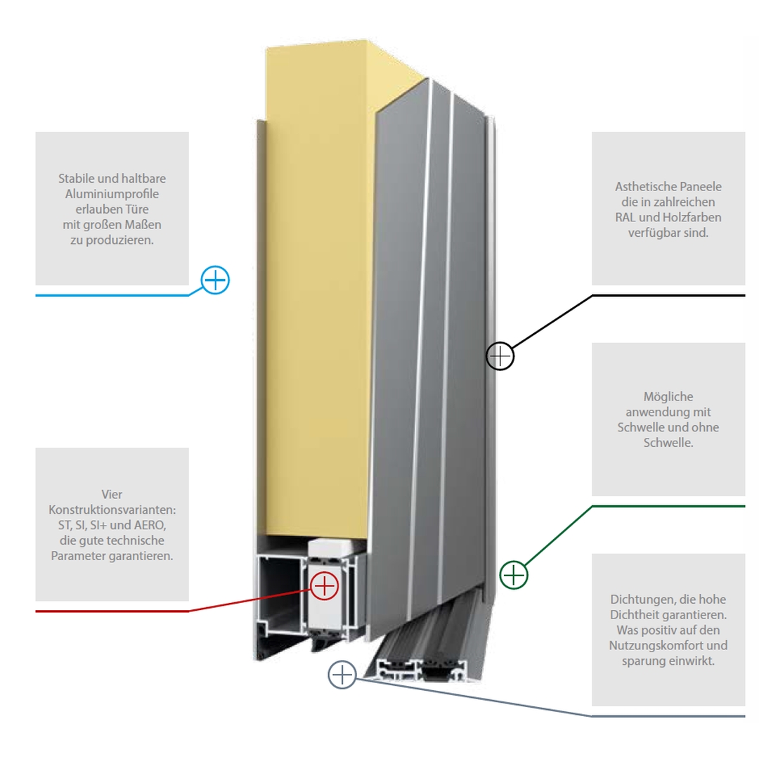 - Paneelstarke: 77mm - Flügelüberdeckendes Paneel