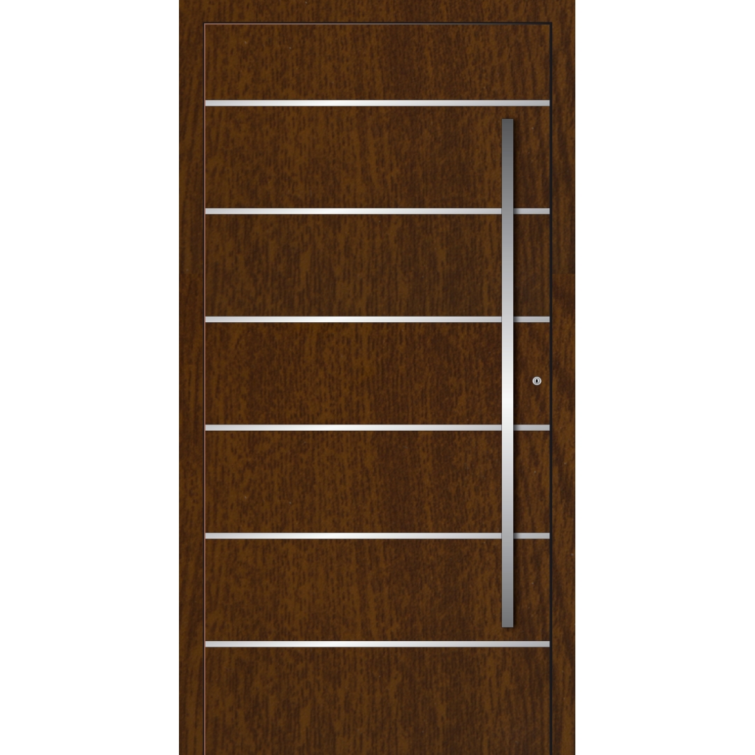 Die Aluminiumfüllungen sind in vielen Mustern und Farben erhältlich. Die während der Produktion ausgeührten Ausfräsungen mit verschiedenen Formen, Verzierungen sowie die Anwendung von Verbundverglasung lassen eine Vielzahl von Kombinationen und Varianten zu. Dadurch können die Türen sowohl in modernen Häusern, als auch in klassischen Bauwerken eingebaut werden. Sie bilden in jeder Kombination einen wunderschönen, auffallenden Hauseingang, und verleihen der Fassade besonderen Charme.