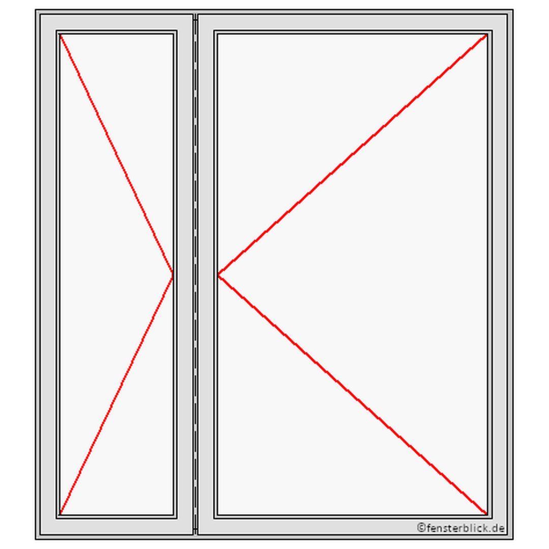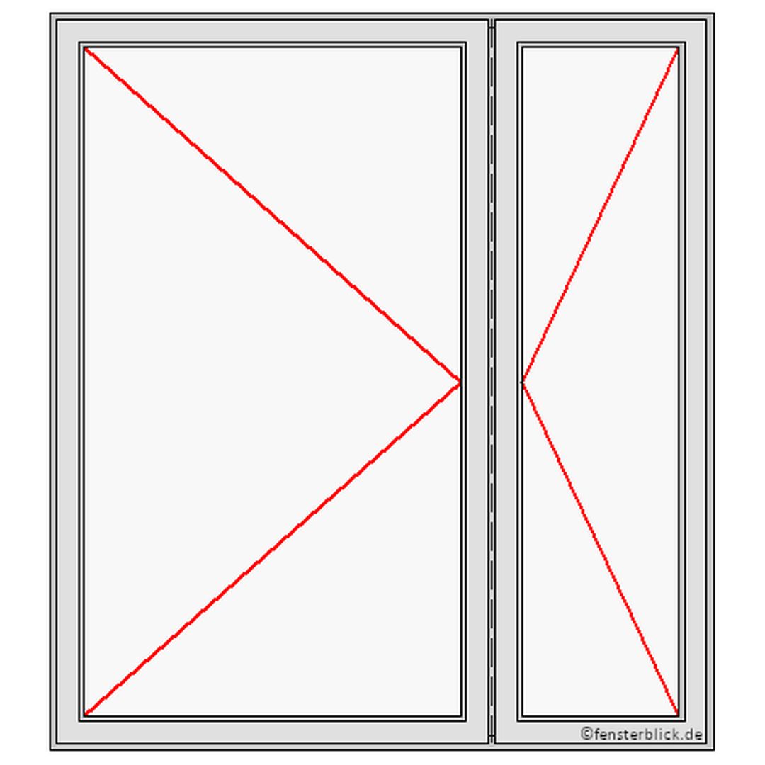 Für Rechtshänder empfiehlt er sich den rechten Flügel als Gangflügel zu wählen, bei Linkshändern wiederum andersherum (Perspektive: vom Haus-Inneren betrachtet). Dies können Sie jedoch auch anhand Ihrer Möblierung und dem Grundriss Ihrer Wohnung entscheiden.