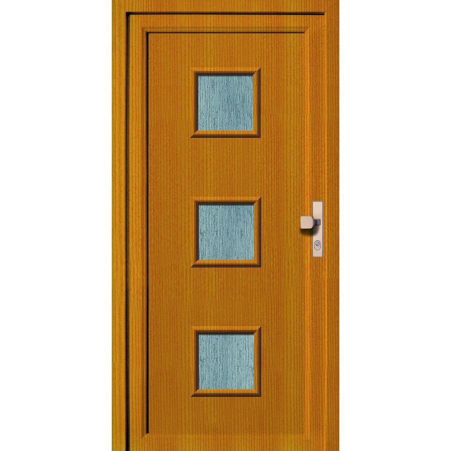 Moderne Haustüren mit Kassetten-Optik und profilierten Glaseinfassungen