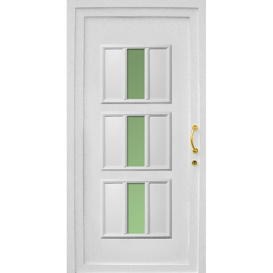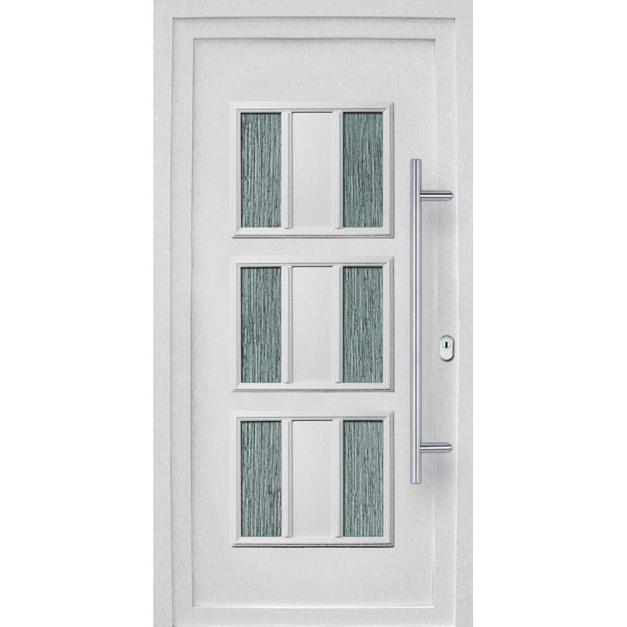 Moderne Haustüren mit Kassetten-Optik und profilierten Glaseinfassungen