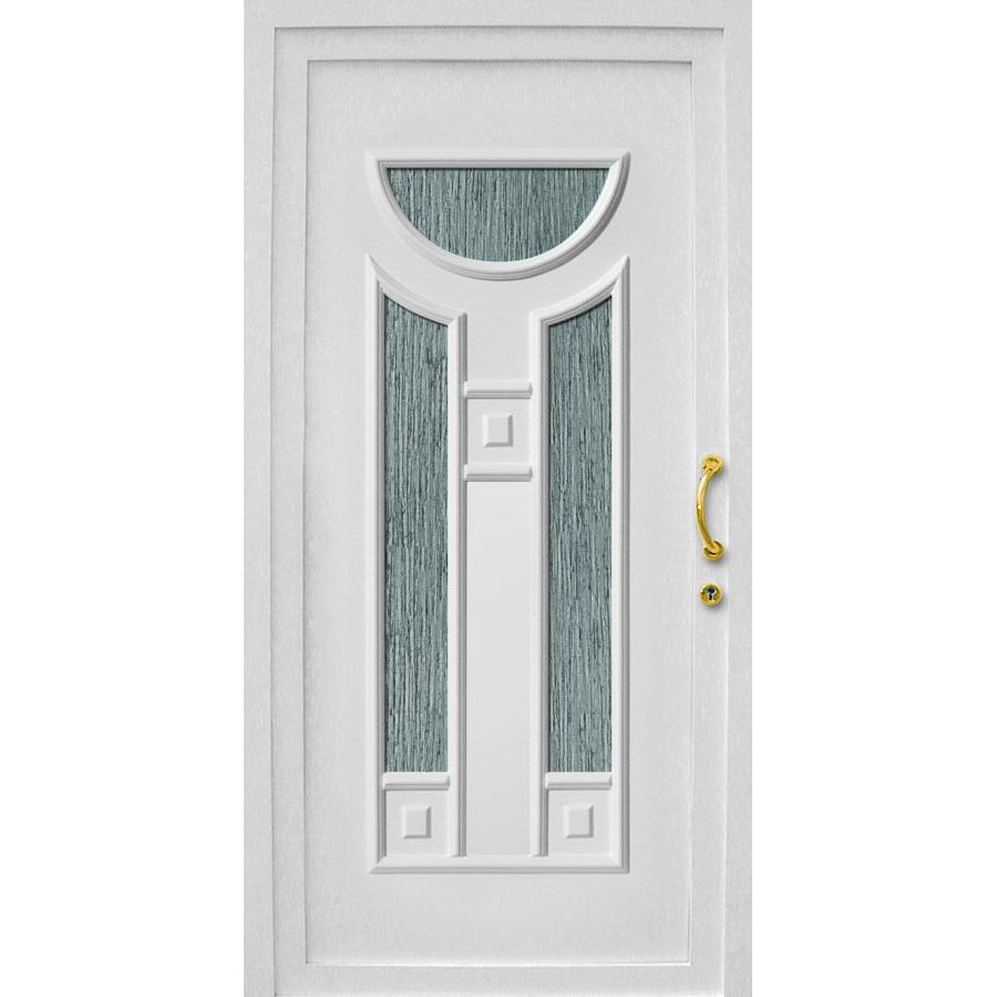 Moderne Haustüren mit Kassetten-Optik und profilierten Glaseinfassungen
