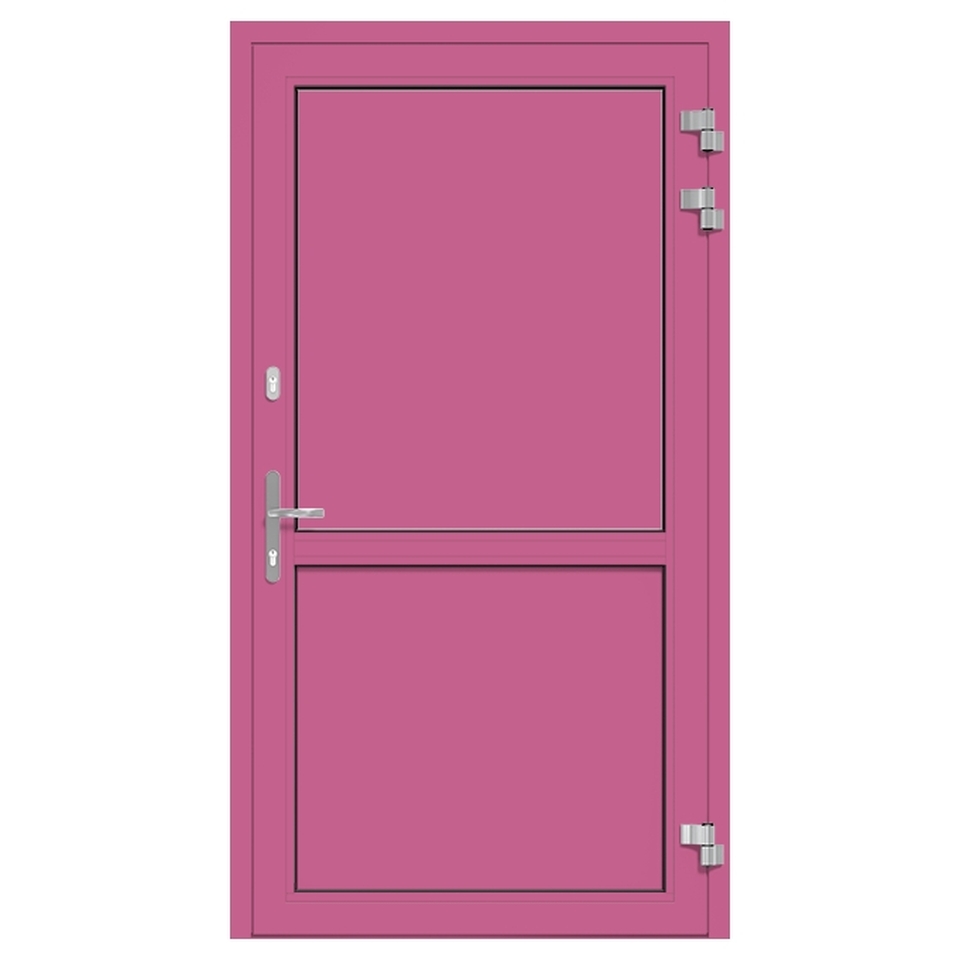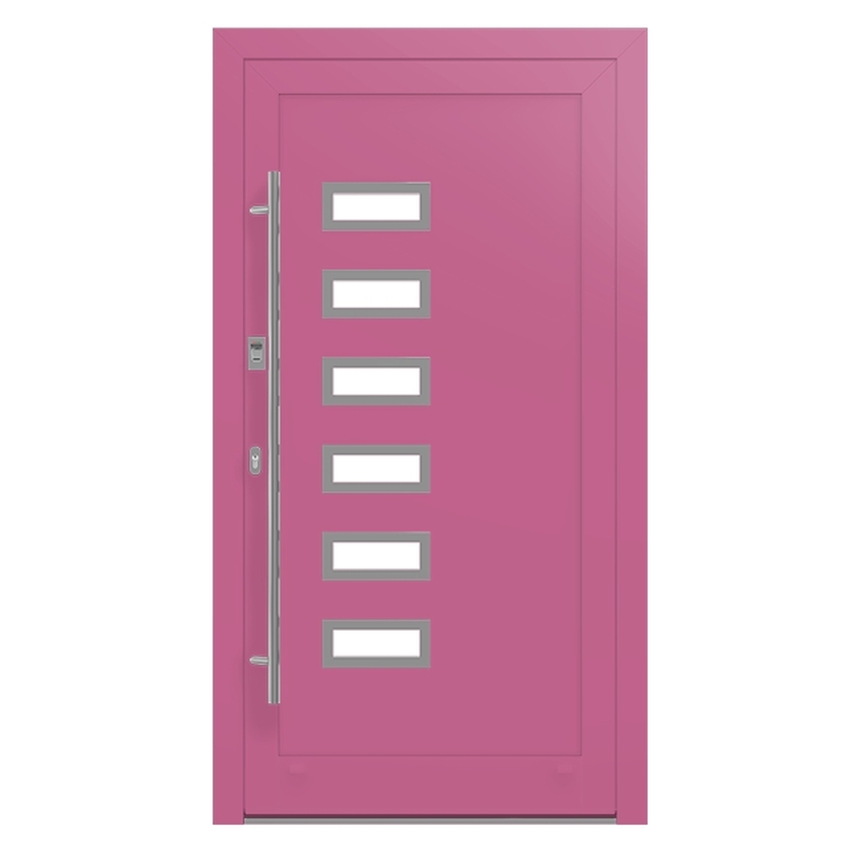 Haustüren in Erikaviolett RAL-4003 fallen durch Ihren quietschigen Farbton auf. Die Farbe erinnert eher an Pink als an ein Violett. Umso seltener ist die diese Haustürfarbe auch an Hausfassaden zu finden. Durch seinen sehr auffälligen Farbton lässt sich die Farbe fast ausschließlich nur mit Weiß und Anthrazit kombinieren. Neben der Farbe können Sie nicht nur zwischen den Materialien Kunststoff, Holz und Aluminium wählen. Auch optische Details, wie die Wahl von Rollbändern statt gängigen Türbändern kann Ihre Haustür visuell aufwerten. Klicken Sie sich durch unsere Haustür Kategorie und entdecken Sie alle Gestaltungsoptionen im Haustür-Konfigurator!
