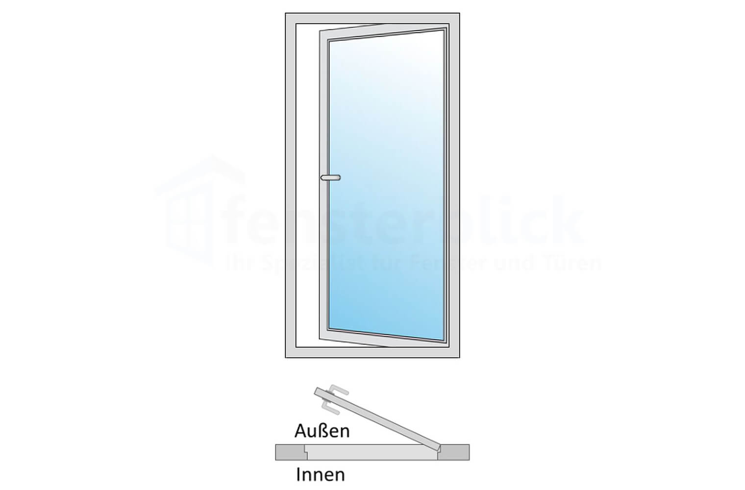 DIN links Öffnung - Die Türbänder sind auf der linken Seite montiert, der Türgriff & der Anschlag liegen auf der rechten Seite, wenn man den Türflügel zu sich heranzieht