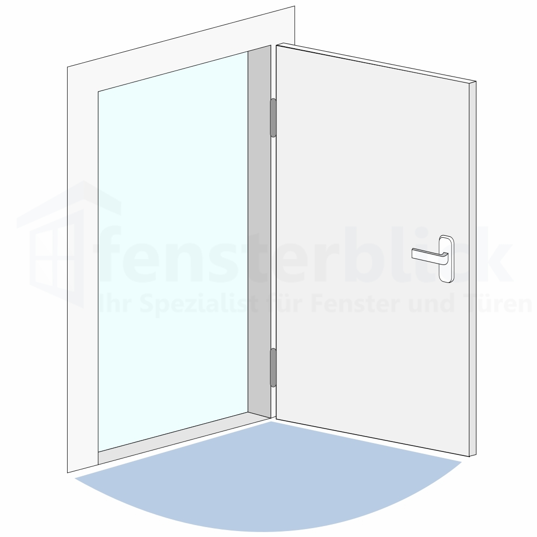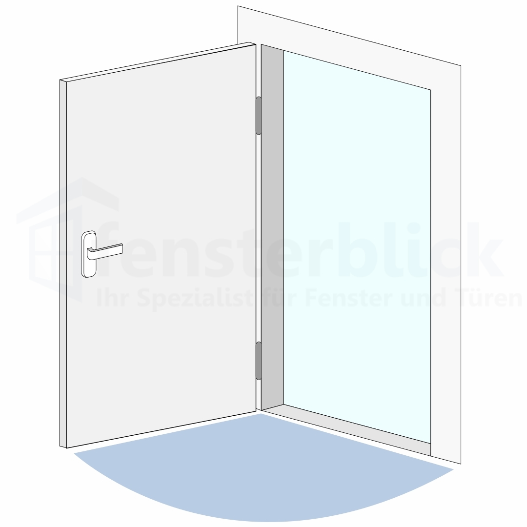 DIN links Öffnung - Die Türbänder sind auf der linken Seite montiert, der Türgriff & der Anschlag liegen auf der rechten Seite, wenn man den Türflügel zu sich heranzieht