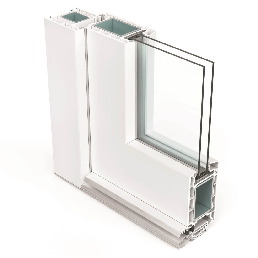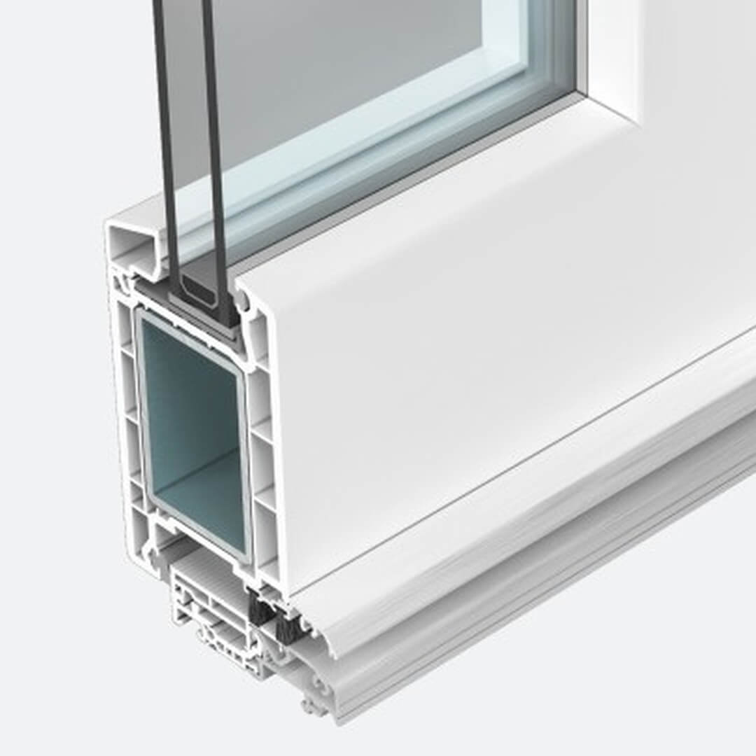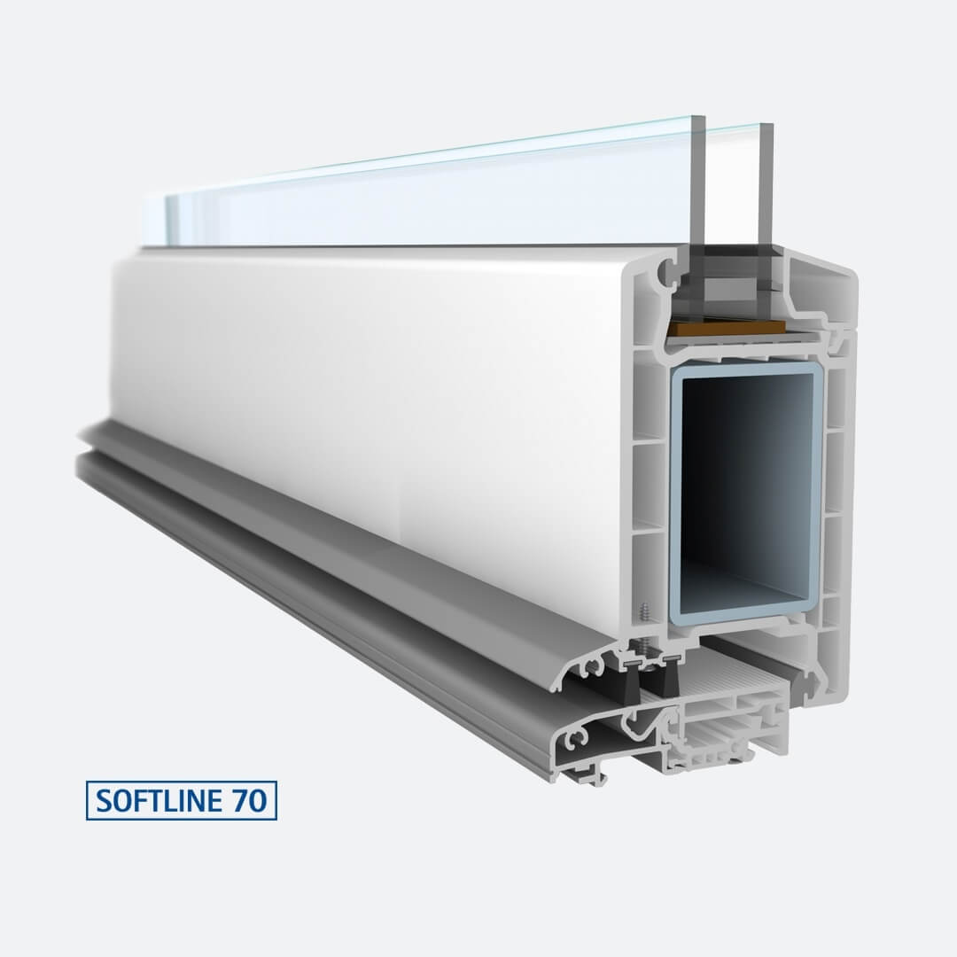 Hochwertiges 5-Kammerprofil mit 70 mm Einbautiefe für eine hervorragende Wärmedämmung und Stabilität. Große Verstärkungskammer mit groß dimensionierten Metallverstärkungen.