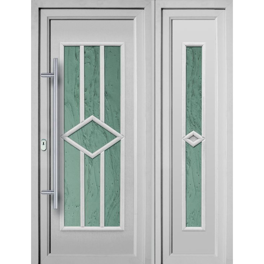 Moderne Haustüren mit Kassetten-Optik und profilierten Glaseinfassungen