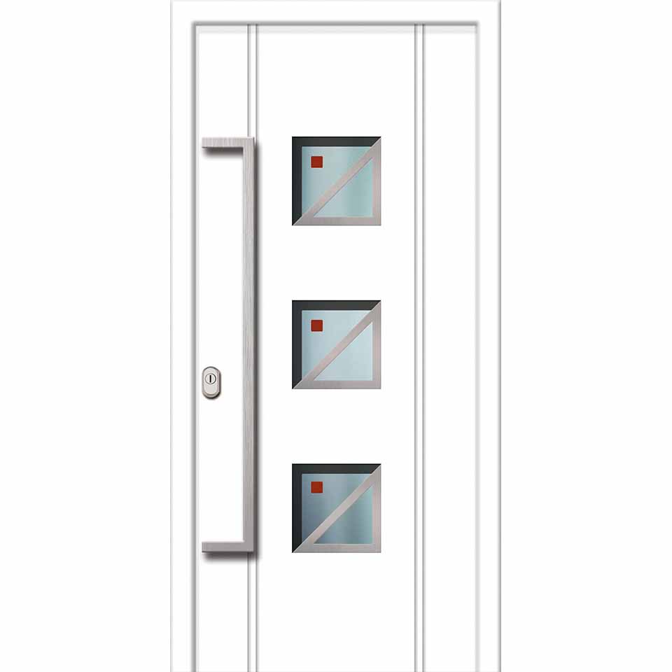 Standardmäßig sind die Kunststofftüren mit Aluminiumschwellen mit thermischen Trennblatt (Warme Schwelle) zur Verringerung von Energieverlusten ausgerüstet.